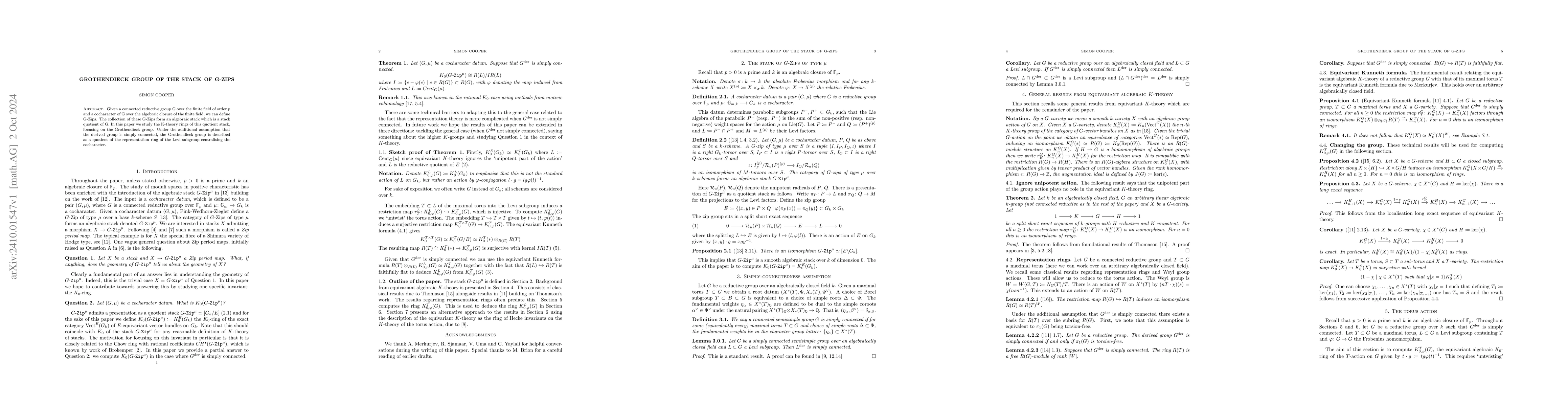Given a connected reductive group G over the finite field of order p and a cocharacter of G over the algebraic closure of the finite field, we can define G-Zips. The collection of these G-Zips form an algebraic stack which is a stack quotient of G. In this paper we study the K-theory rings of this quotient stack, focusing on the Grothendieck group. Under the additional assumption that the derived group is simply connected, the Grothendieck group is described as a quotient of the representation ring of the Levi subgroup centralising the cocharacter.