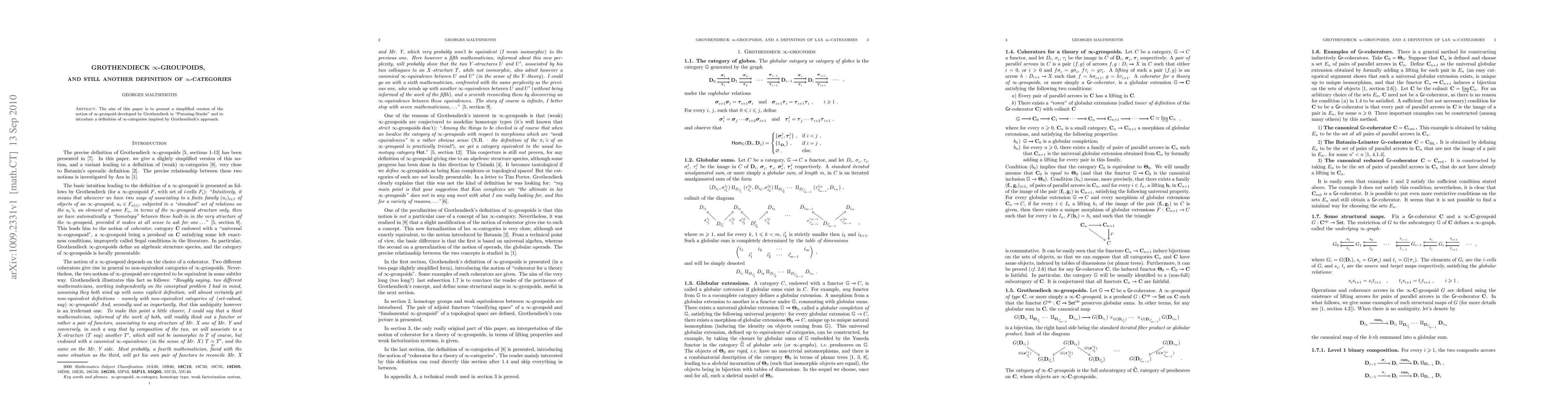 This paper simplifies Grothendieck's notion of $\infty$-groupoids from "Pursuing Stacks" and introduces a new definition of $\infty$-categories based on the same foundational approach.