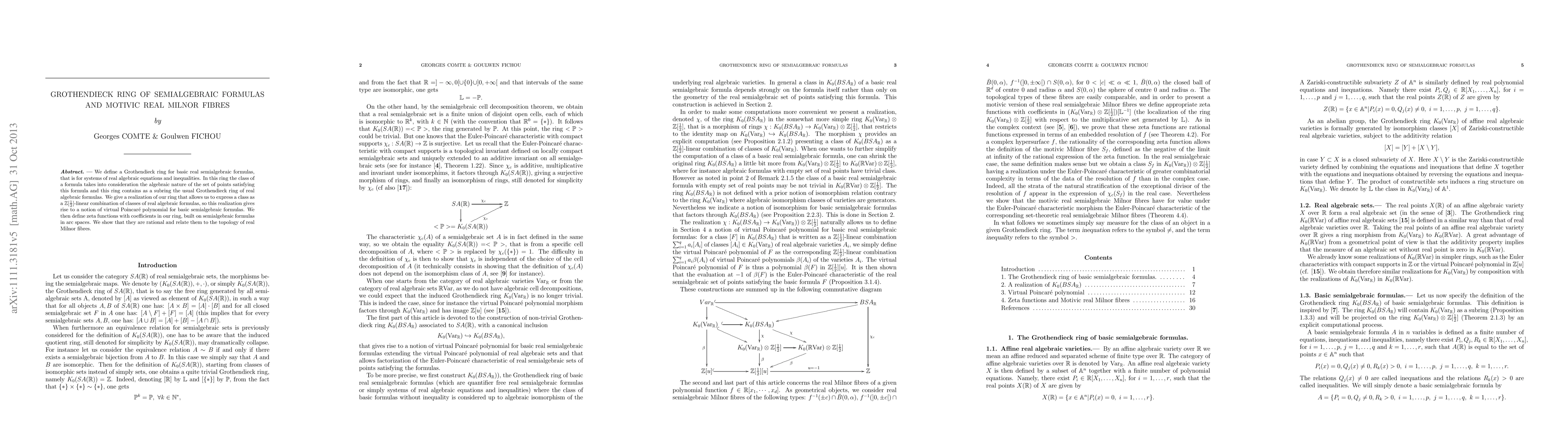 This paper defines a Grothendieck ring for real semialgebraic formulas, incorporating the algebraic nature of their solution sets, and realizes it as a Z[1/2]-linear combination of classes of real algebraic formulas. It also introduces zeta functions based on these formulas, proving their rationality and linking them to the topology of real Milnor fibres.
