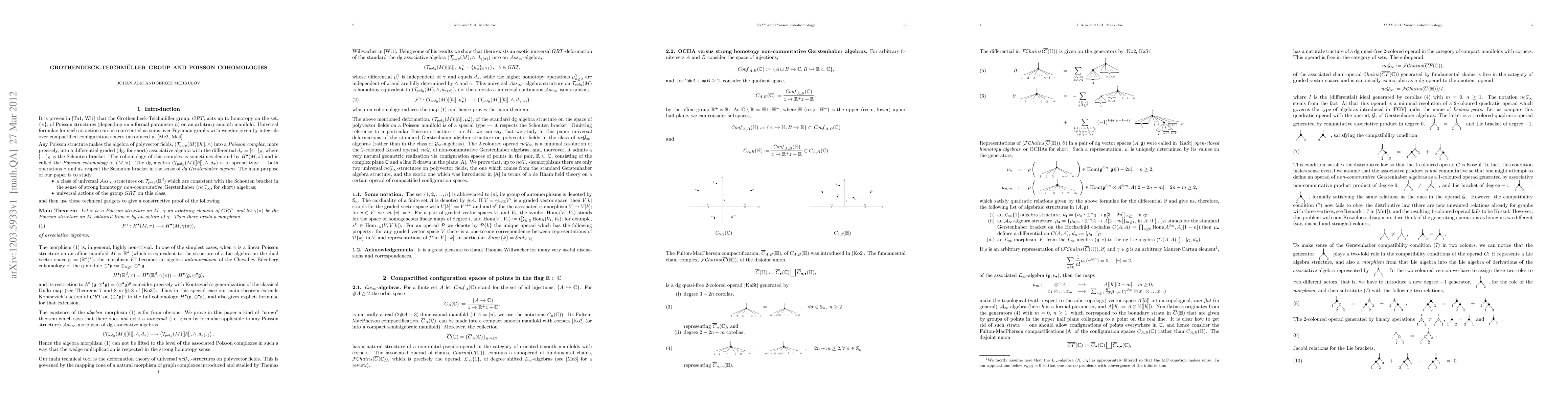 This paper explores how the Grothendieck-Teichmuller group acts on Poisson cohomologies of Poisson manifolds, shedding light on key mathematical structures underlying symplectic geometry.
