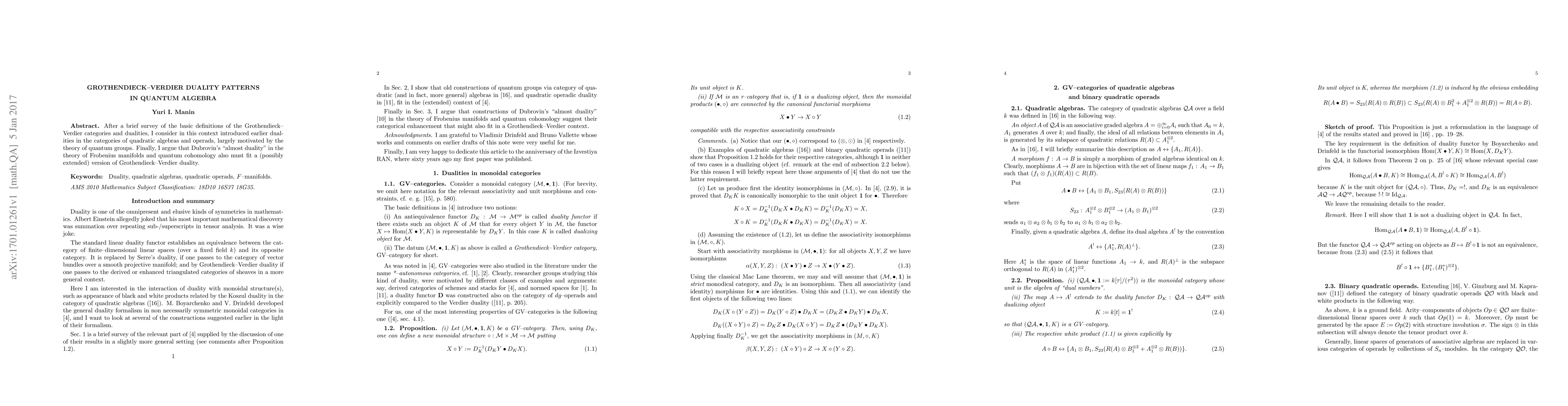 This paper explores the application of Grothendieck-Verdier duality in quantum algebra, focusing on quadratic algebras, operads, and quantum groups. It suggests that Dubrovin's "almost duality" in Frobenius manifolds aligns with an extended version of this duality framework.