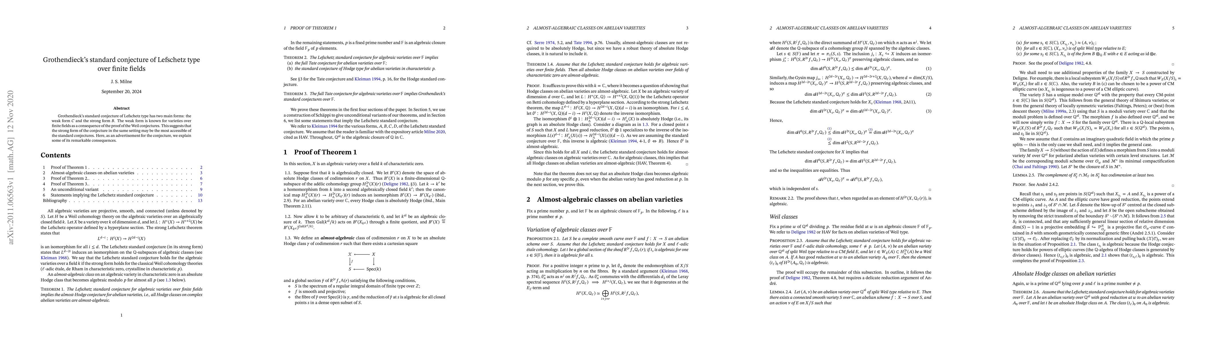 This paper discusses Grothendieck's standard conjecture of Lefschetz type over finite fields, highlighting that the weak form is proven, while the strong form remains a significant open problem, yet it suggests promising implications for future research.