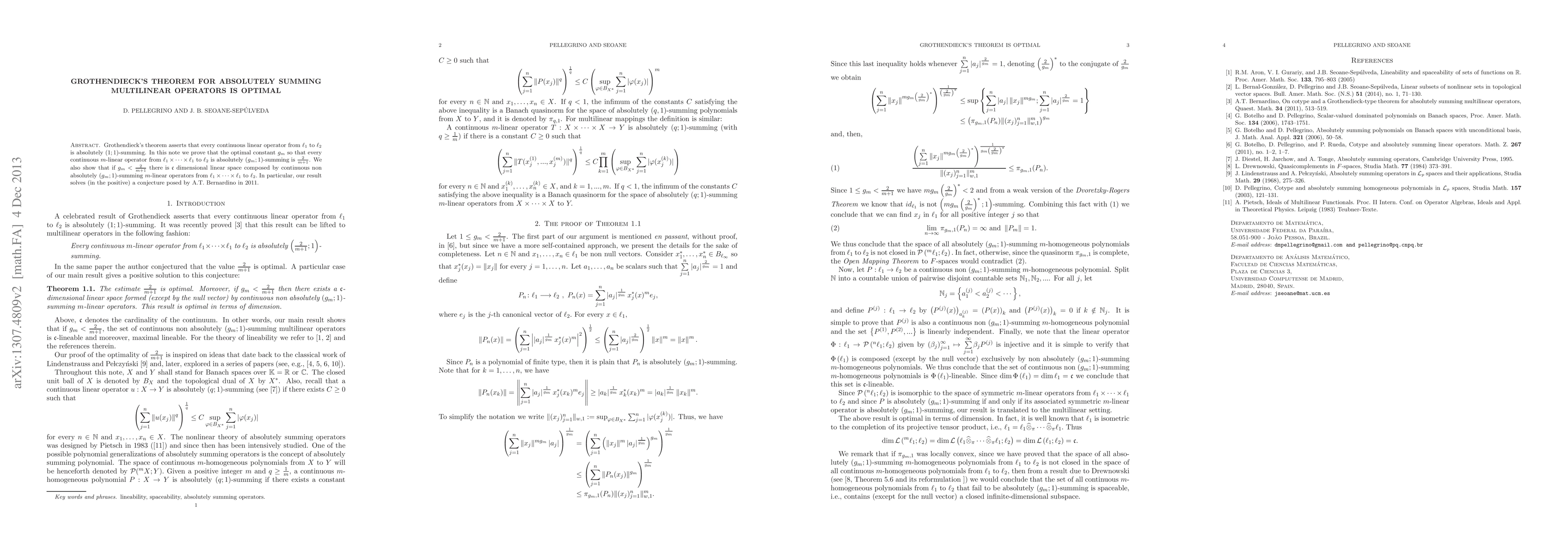 Grothendieck's theorem asserts that every continuous linear operator from $\ell_{1}$ to $\ell_{2}$ is absolutely $\left( 1;1\right) $-summing. In this note we prove that the optimal constant $g_{m}$ so that every continuous $m$-linear operator from $\ell_{1}\times\cdots\times\ell_{1}$ to $\ell_{2}$ is absolutely $\left( g_{m};1\right) $-summing is $\frac{2}{m+1}$. We also show that if $g_{m}<\frac{2}{m+1}$ there is $\mathfrak{c}$ dimensional linear space composed by continuous non absolutely $\left( g_{m};1\right) $-summing $m$-linear operators from $\ell_{1}\times\cdots\times\ell_{1}$ to $\ell_{2}.$ In particular, our result solves (in the positive) a conjecture posed by A.T. Bernardino in 2011.