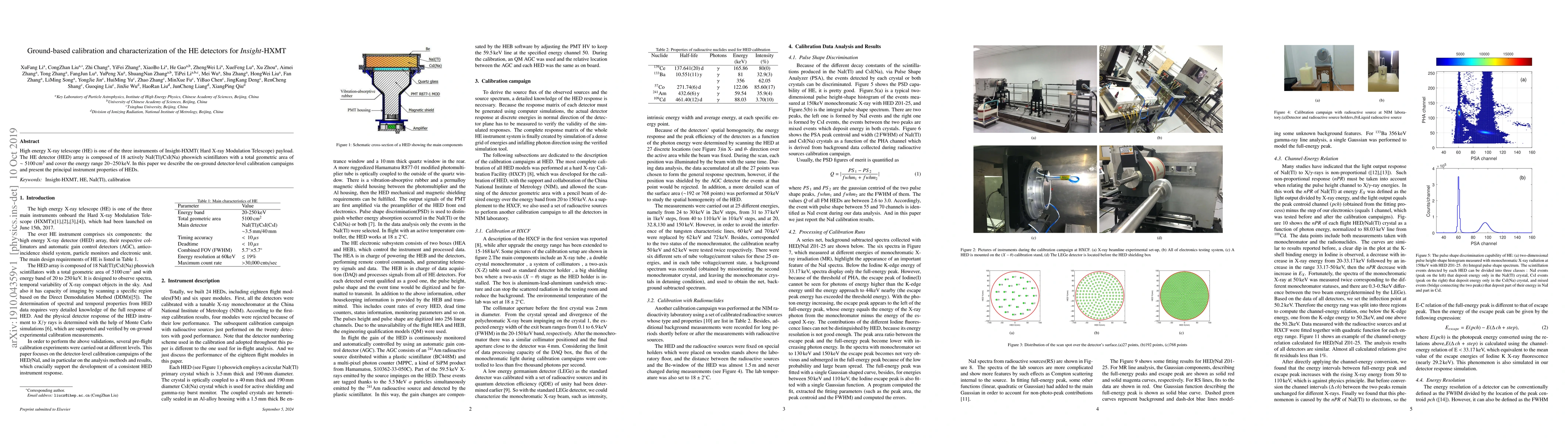 High energy X-ray telescope (HE) is one of the three instruments of Insight-HXMT(Hard X-ray Modulation Telescope) payload. The HE detector (HED) array is composed of 18 actively NaI(Tl)/CsI(Na) phoswich scintillators with a total geometric area of ~ 5100cm^2 and cover the energy range 20-250 keV. In this paper we describe the on-ground detector-level calibration campaigns and present the principal instrument properties of HEDs.