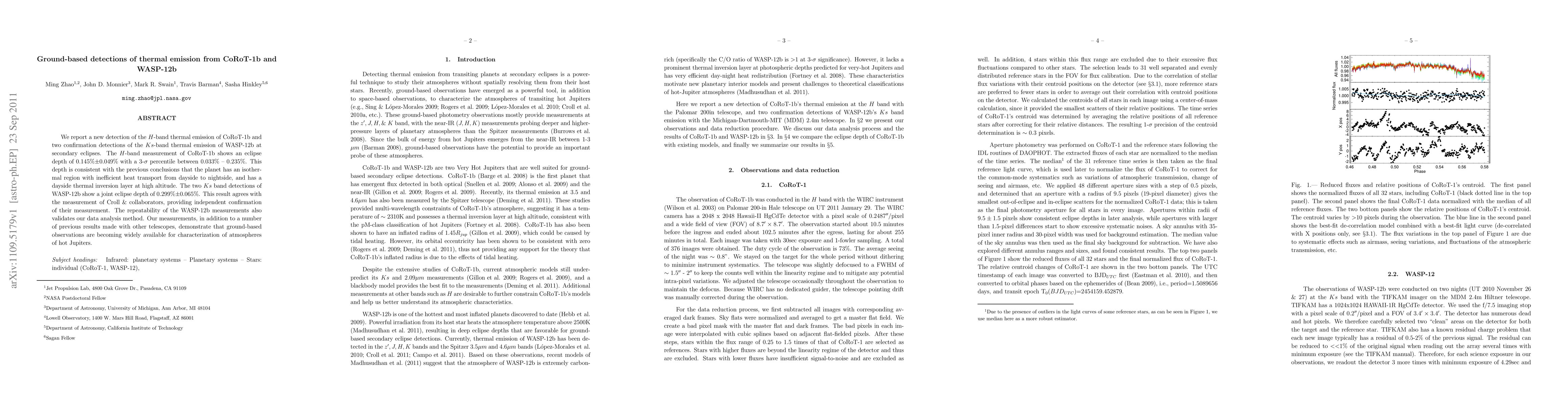 This paper reports new ground-based detections of thermal emission from the exoplanets CoRoT-1b and WASP-12b, confirming previous findings of inefficient heat transport and thermal inversion in CoRoT-1b, and validating measurements of WASP-12b, supporting the use of ground-based telescopes for characterizing hot Jupiter atmospheres.