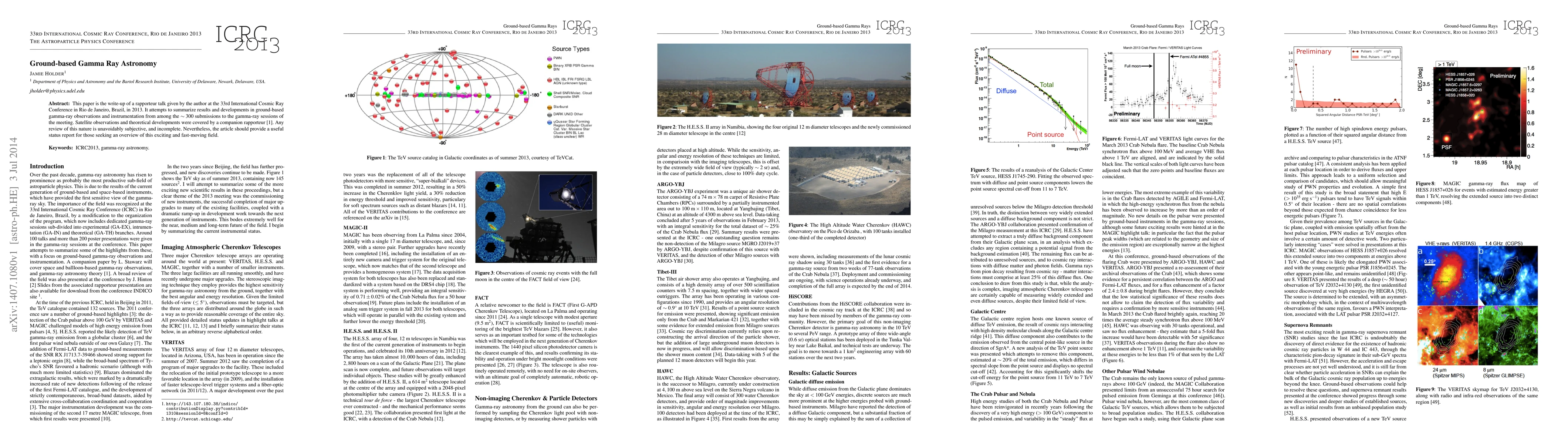 This paper is the write-up of a rapporteur talk given by the author at the 33rd International Cosmic Ray Conference in Rio de Janeiro, Brazil, in 2013. It attempts to summarize results and developments in ground-based gamma-ray observations and instrumentation from among the $\sim300$ submissions to the gamma-ray sessions of the meeting. Satellite observations and theoretical developments were covered by a companion rapporteur. Any review of this nature is unavoidably subjective, and incomplete. Nevertheless, the article should provide a useful status report for those seeking an overview of this exciting and fast-moving field.