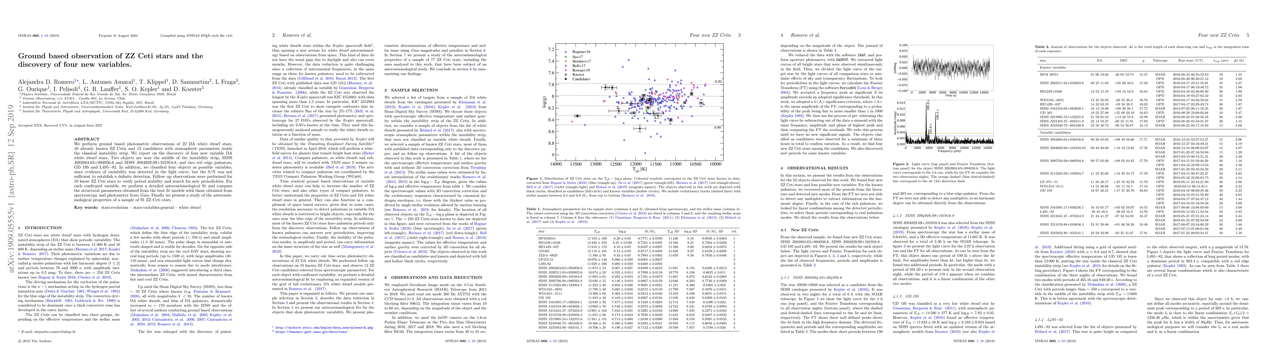 We perform ground based photometric observations of 22 DA white dwarf stars, 10 already known ZZ Cetis and 12 candidates with atmospheric parameters inside the classical instability strip. We report on the discovery of four new variable DA white dwarf stars. Two objects are near the middle of the instability strip, SDSS J082804.63+094956.6 and SDSS J094929.09+101918.8, and two red edge pulsators, GD 195 and L495-82. In addition, we classified four objects as possible variables, since evidence of variability was detected in the light curve, but the S/N was not sufficient to establish a definite detection. Follow-up observations were performed for 10 know ZZ Ceti stars to verify period stability and search for new periodicities. For each confirmed variable, we perform a detailed asteroseismological fit and compare the structural parameters obtained from the best fit models with those obtained from spectroscopy and photometry from Gaia. Finally we present a study of the asteroseismological properties of a sample of 91 ZZ Ceti stars.