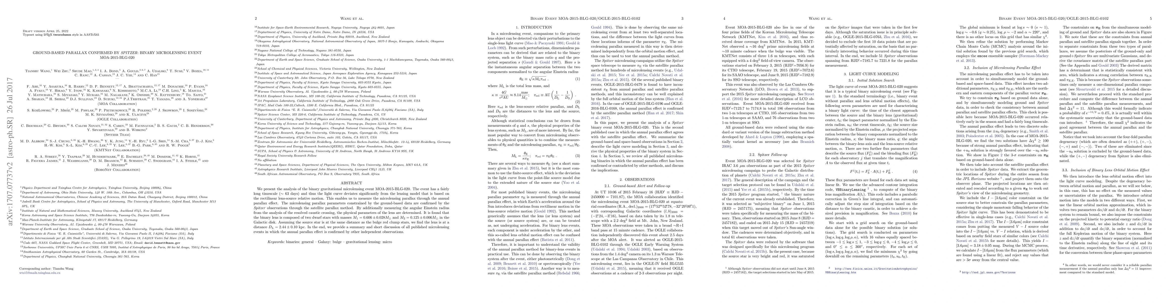 This paper analyzes the binary gravitational microlensing event MOA-2015-BLG-020, confirming microlensing parallax through ground-based and Spitzer observations. The lens is identified as a binary system of two dwarf stars, with masses and a distance to the lens determined.