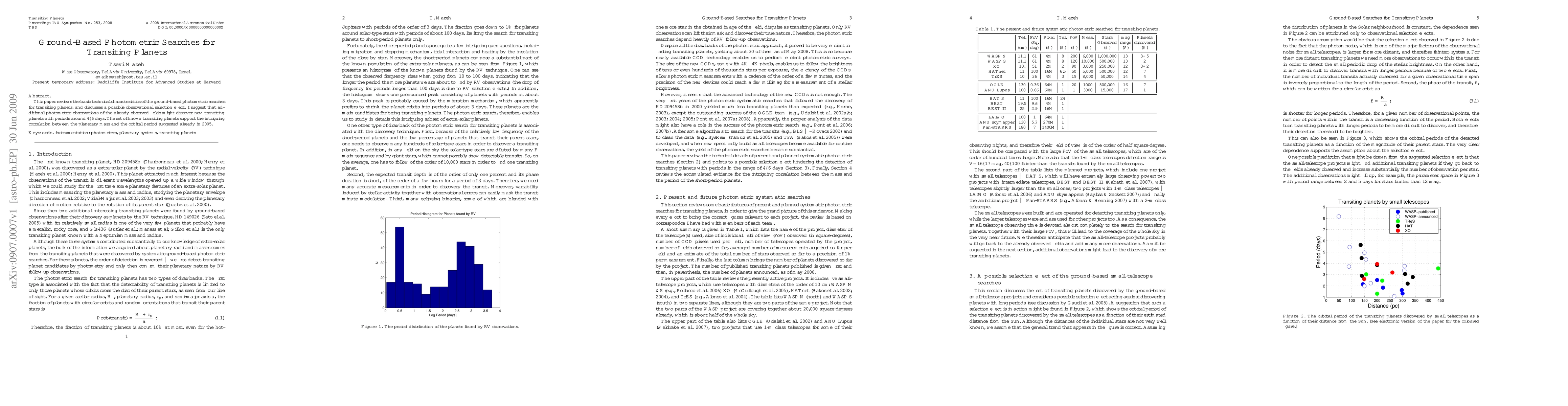 This paper reviews ground-based photometric methods for detecting transiting planets and discusses potential observational biases. It suggests that further observations in previously surveyed areas could uncover new planets with orbital periods of 4-6 days, supporting a 2005 correlation between planetary mass and orbital period.