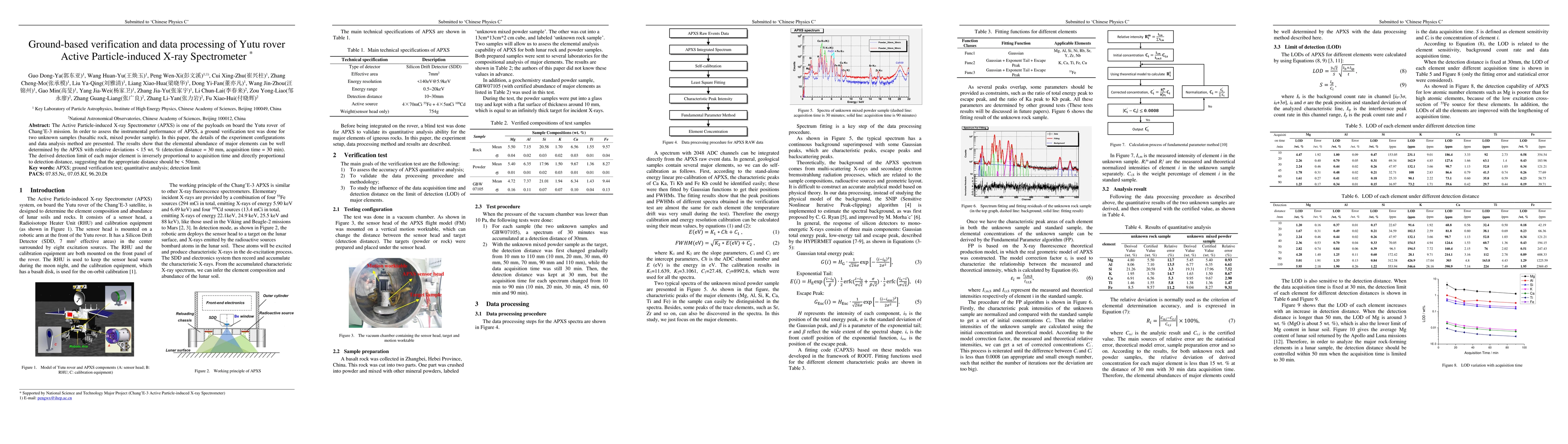 This paper details ground verification tests for the Yutu rover's APXS instrument using two unknown samples, demonstrating its ability to determine elemental abundances with relative deviations under 15 wt.%, and discusses the detection limits influenced by acquisition time and detection distance.