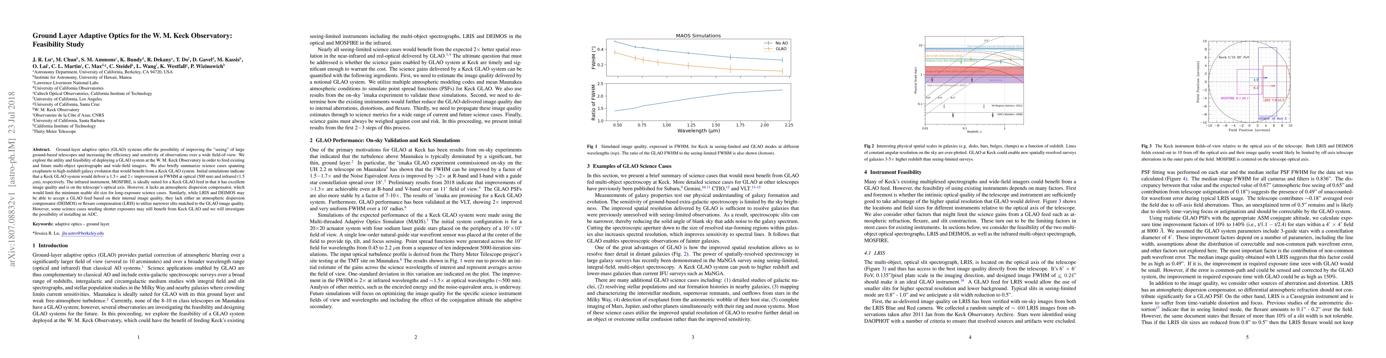 Ground-layer adaptive optics (GLAO) systems offer the possibility of improving the "seeing" of large ground-based telescopes and increasing the efficiency and sensitivity of observations over a wide field-of-view. We explore the utility and feasibility of deploying a GLAO system at the W. M. Keck Observatory in order to feed existing and future multi-object spectrographs and wide-field imagers. We also briefly summarize science cases spanning exoplanets to high-redshift galaxy evolution that would benefit from a Keck GLAO system. Initial simulations indicate that a Keck GLAO system would deliver a 1.5x and 2x improvement in FWHM at optical (500 nm) and infrared (1.5 micron), respectively. The infrared instrument, MOSFIRE, is ideally suited for a Keck GLAO feed in that it has excellent image quality and is on the telescope's optical axis. However, it lacks an atmospheric dispersion compensator, which would limit the minimum usable slit size for long-exposure science cases. Similarly, while LRIS and DEIMOS may be able to accept a GLAO feed based on their internal image quality, they lack either an atmospheric dispersion compensator (DEIMOS) or flexure compensation (LRIS) to utilize narrower slits matched to the GLAO image quality. However, some science cases needing shorter exposures may still benefit from Keck GLAO and we will investigate the possibility of installing an ADC.