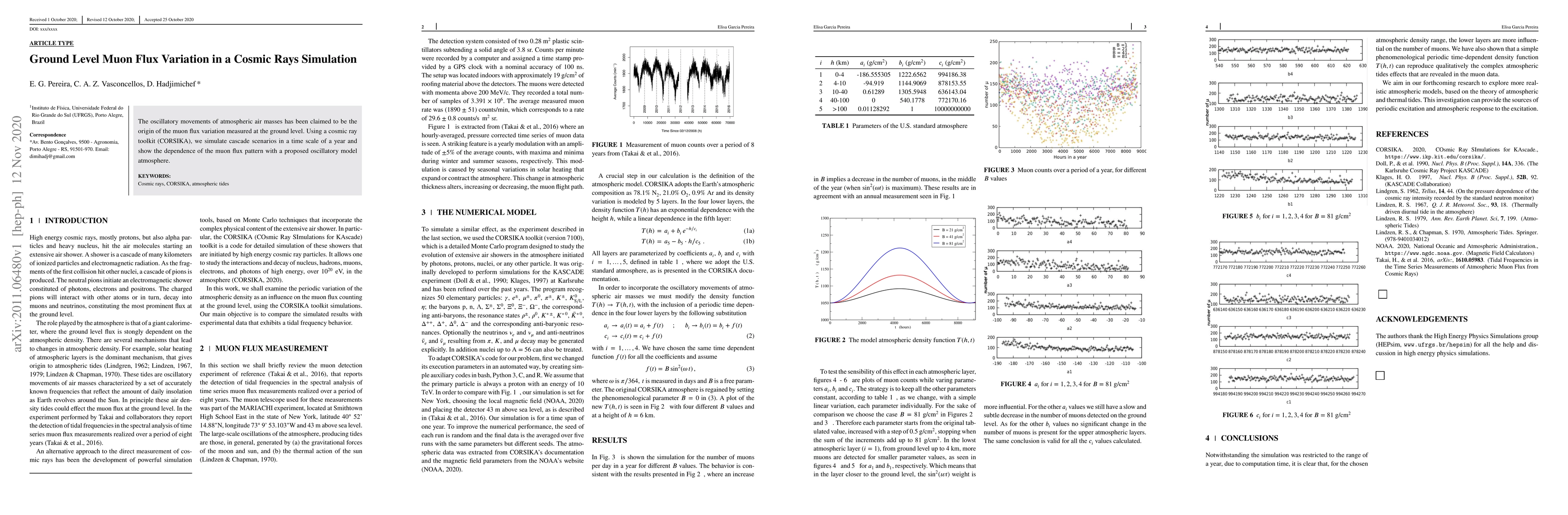 The oscillatory movements of atmospheric air masses has been claimed to be the origin of the muon flux variation measured at the ground level. Using a cosmic ray toolkit (CORSIKA), we simulate cascade scenarios in a time scale of a year and show the dependence of the muon flux pattern with a proposed oscillatory model atmosphere.