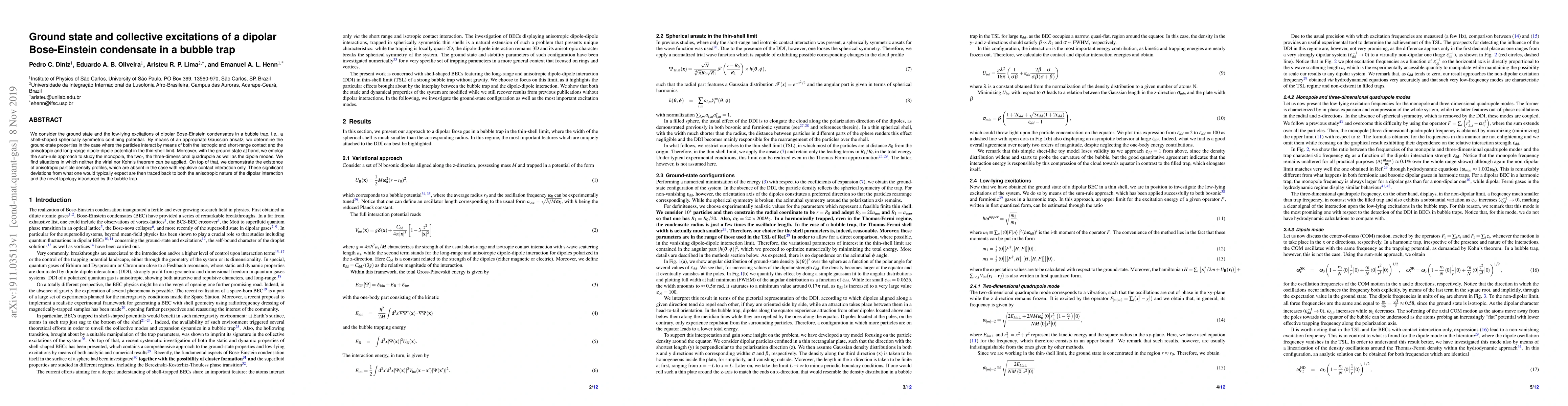 This paper investigates the ground state and collective excitations of dipolar Bose-Einstein condensates in a bubble trap, revealing anisotropic density profiles and deviations from typical behavior due to dipolar interactions and the unique trap geometry. The study employs a Gaussian ansatz and sum-rule approach to analyze various modes of excitation.