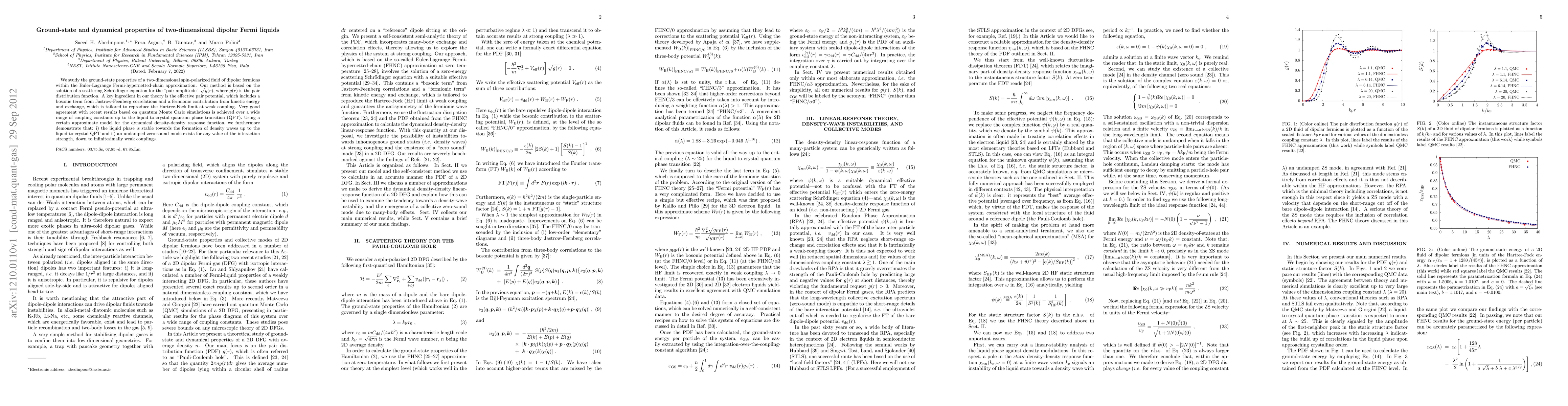 This research paper investigates the ground-state properties of a two-dimensional fluid of dipolar fermions using the Euler-Lagrange Fermi-hypernetted-chain approximation. It demonstrates that the liquid phase is stable towards density wave formation until the quantum phase transition, and an undamped zero-sound mode exists for any value of interaction strength.