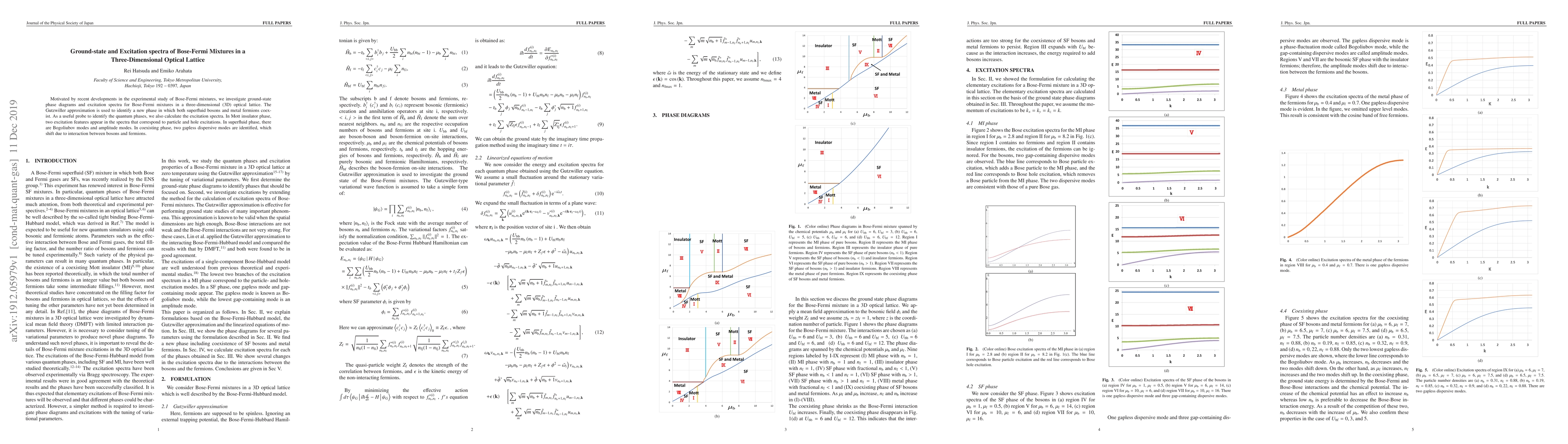 This paper investigates the ground-state and excitation spectra of Bose-Fermi mixtures in a 3D optical lattice using the Gutzwiller approximation, revealing a new coexisting phase of superfluid bosons and metal fermions. The study identifies distinct excitation features in different phases, including Bogoliubov and amplitude modes in the superfluid phase, and gapless dispersive modes in the coexisting phase.