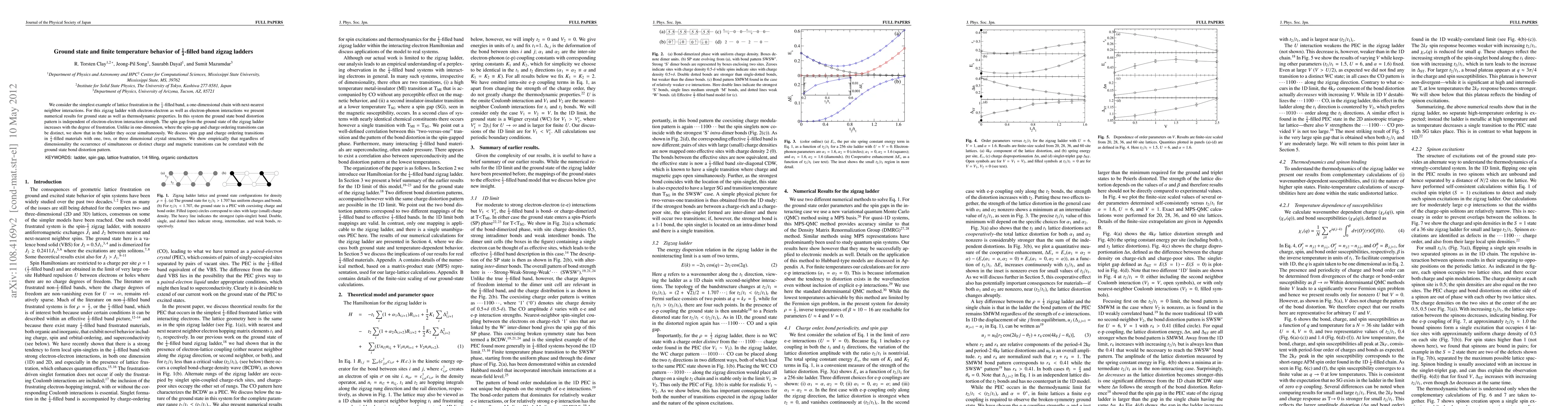 We consider the simplest example of lattice frustration in the 1/4-filled band, a one-dimensional chain with next-nearest neighbor interactions. For this zigzag ladder with electron-electron as well as electron-phonon interactions we present numerical results for ground state as well as thermodynamic properties. In this system the ground state bond distortion pattern is independent of electron-electron interaction strength. The spin gap in the ground state of the zigzag ladder increases with the degree of frustration. Unlike in one-dimension, where the spin-gap and charge ordering transitions can be distinct, we show that in the ladder they occur simultaneously. We discuss spin gap and charge ordering transitions in 1/4-filled materials with one, two, or three dimensional crystal structures. We show empirically that regardless of dimensionality the occurrence of simultaneous or distinct charge and magnetic transitions can be correlated with the ground state bond distortion pattern.