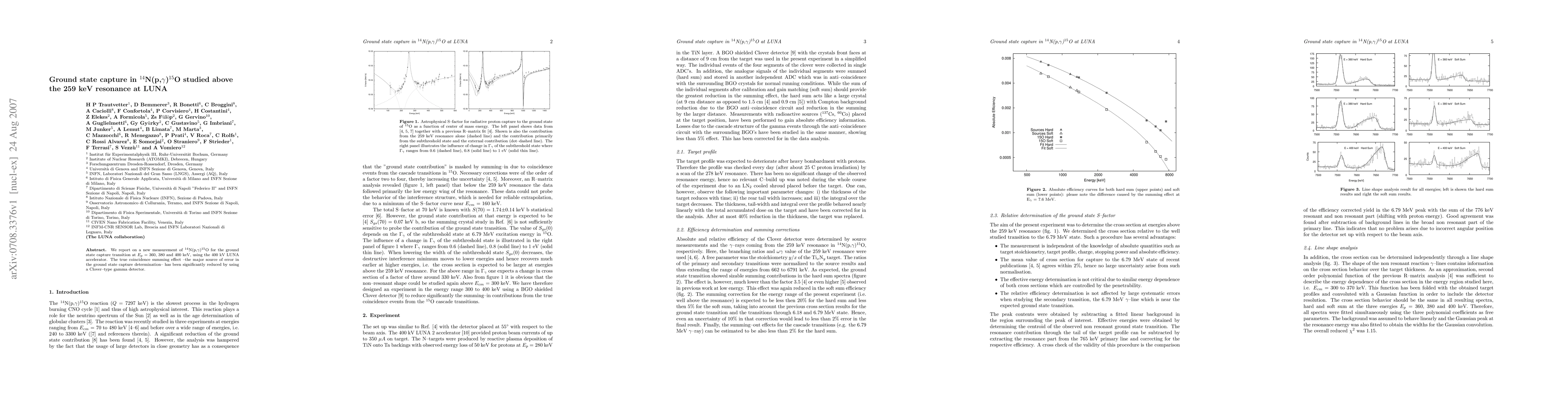 Researchers measured the ground state capture transition of $^{14}$N(p,$eta$)$^{15}$O at 360, 380, and 400 keV using a high-energy accelerator. The use of a Clover-type gamma detector reduced errors in the measurement.