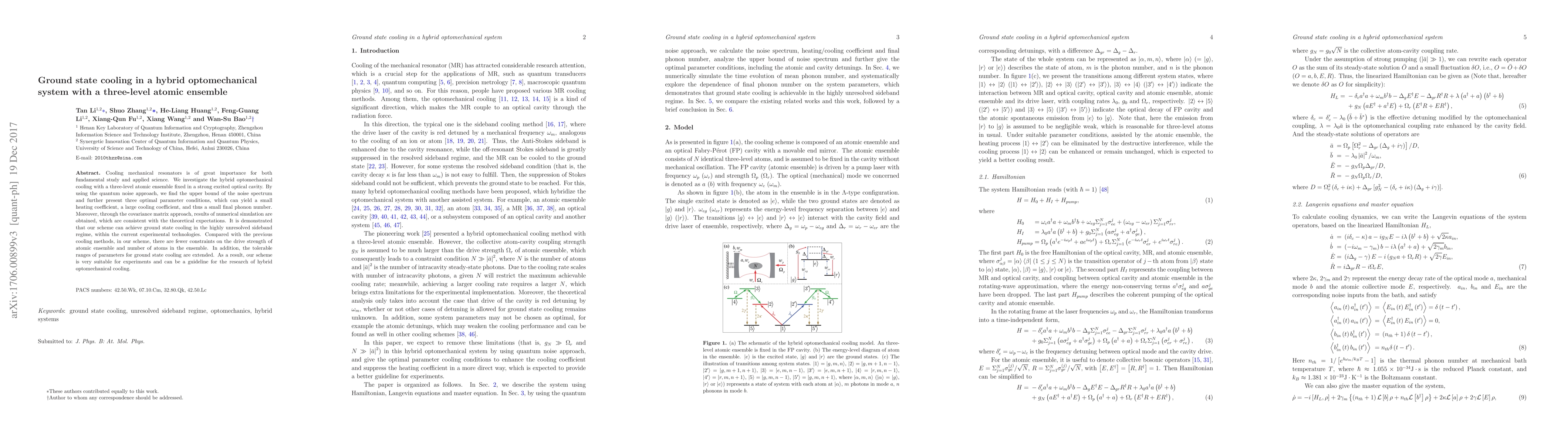 This paper proposes a method for ground state cooling in a hybrid optomechanical system using a three-level atomic ensemble. The scheme achieves optimal cooling conditions with fewer constraints on atomic ensemble parameters, extending the tolerable ranges for ground state cooling and demonstrating feasibility within current experimental technologies.