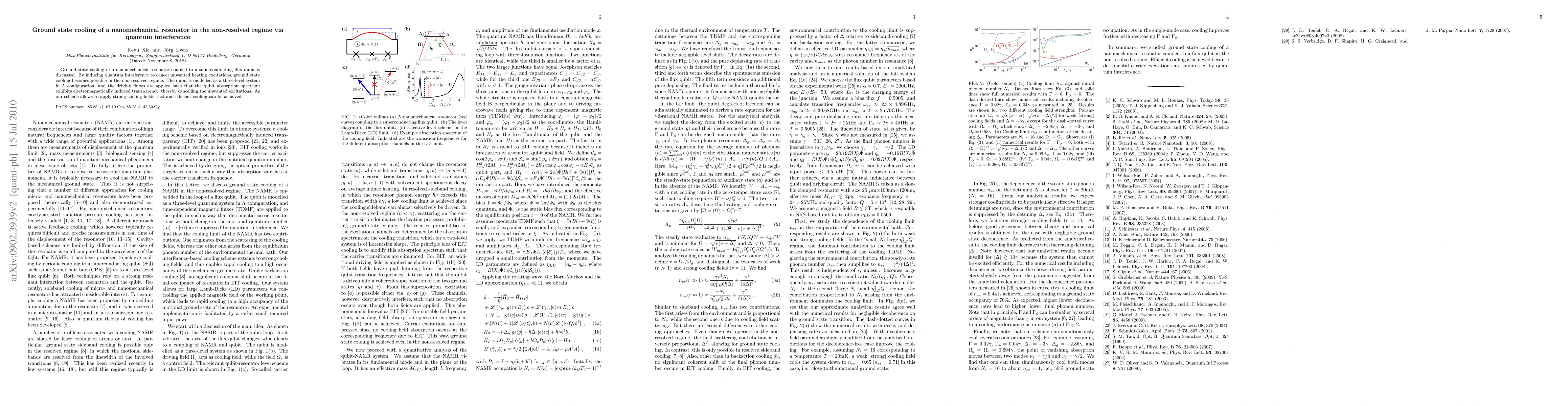 This paper demonstrates ground state cooling of a nanomechanical resonator via quantum interference in the weak-confinement regime, using a superconducting flux qubit modeled as a three-level system. The method leverages electromagnetically induced transparency to cancel unwanted carrier excitations, enabling efficient cooling.