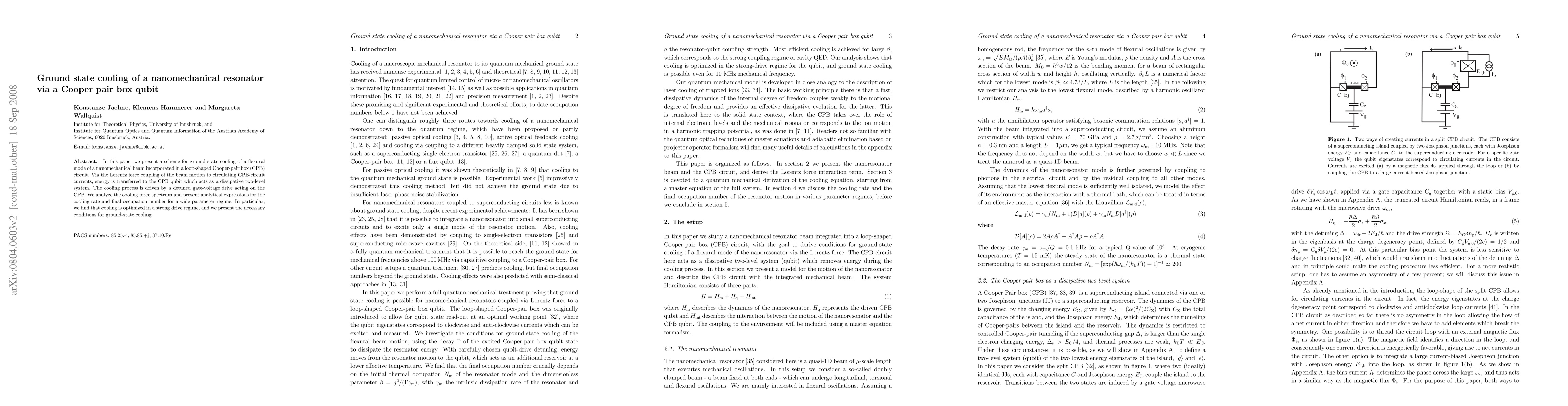 This paper proposes a method for cooling a nanomechanical resonator's ground state using a Cooper pair box qubit, where the resonator's flexural mode is coupled to the qubit via a Lorentz force. The cooling process is optimized through a detuned gate-voltage drive, and the authors provide analytical expressions for the cooling rate and final occupation number, identifying conditions for optimal ground-state cooling.