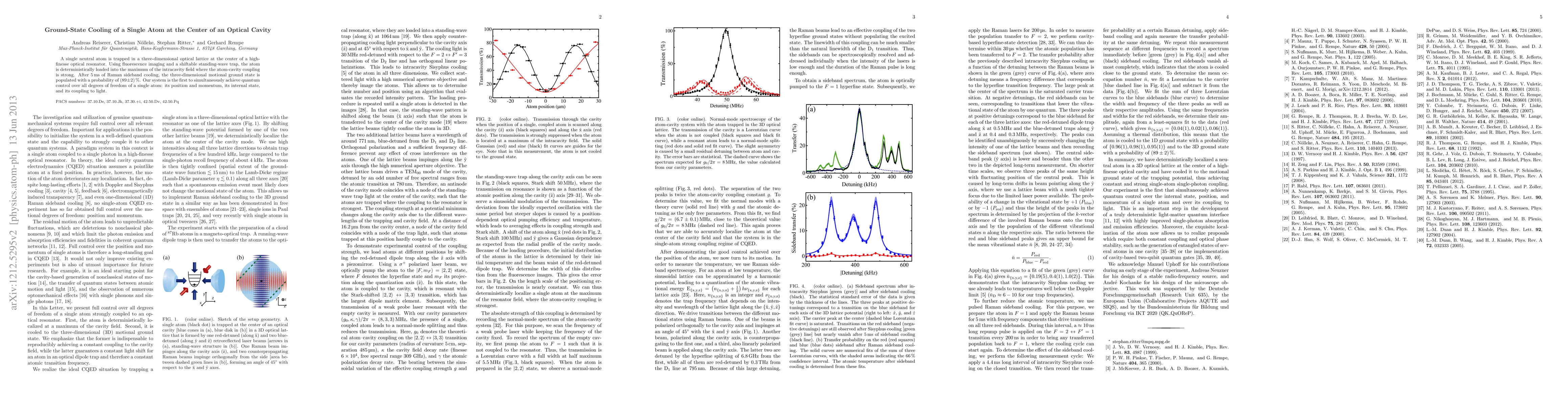 This paper reports the ground-state cooling of a single neutral atom trapped in an optical cavity, achieving a 89% probability of populating the three-dimensional motional ground state after 5ms of Raman sideband cooling. The system enables quantum control over all degrees of freedom of the atom, including its position, momentum, internal state, and light coupling.