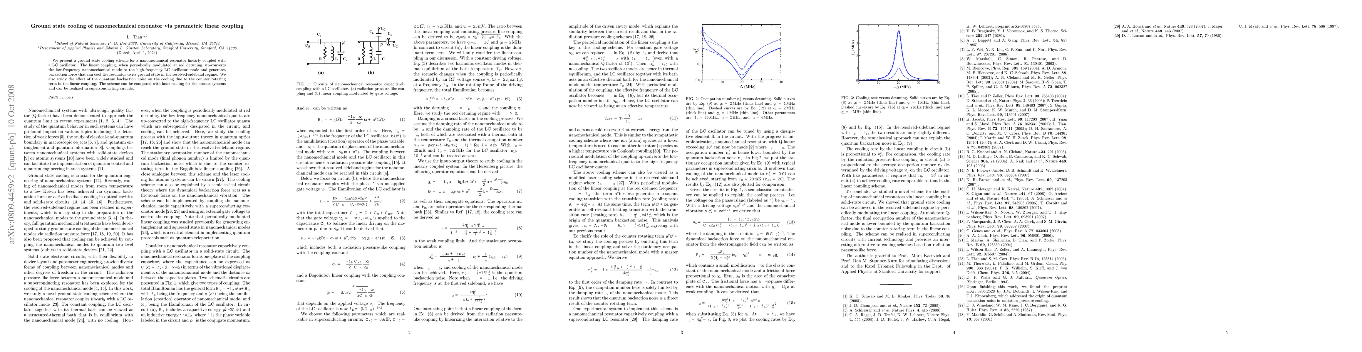 This paper proposes a ground state cooling method for nanomechanical resonators using linear coupling with an LC oscillator, modulated at red detuning to achieve cooling via backaction force. The study also examines the impact of quantum backaction noise on the cooling process, and compares the technique to laser cooling in atomic systems, suggesting its applicability in superconducting circuits.
