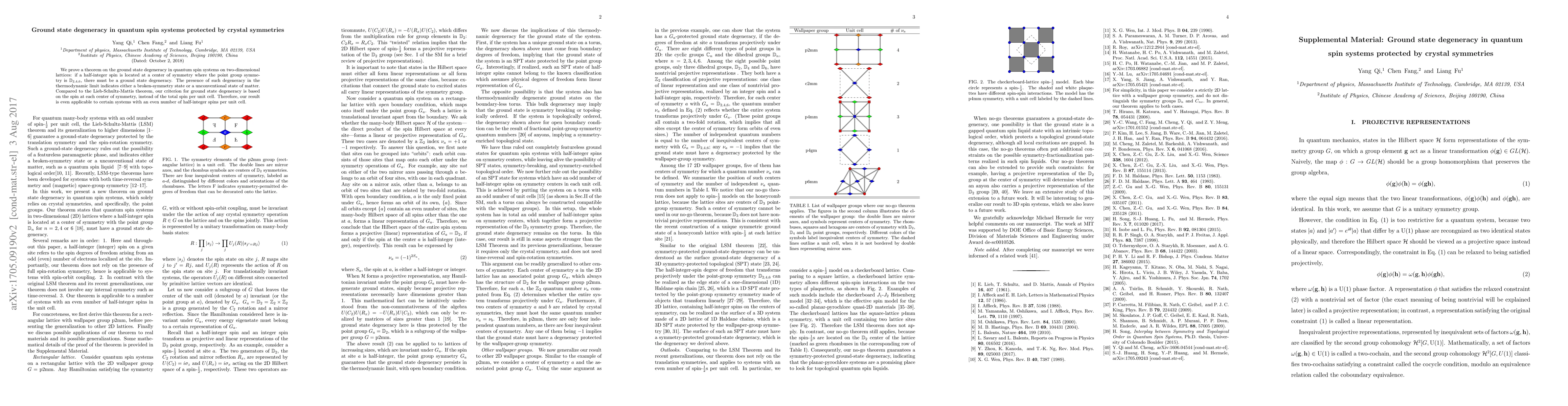 This paper establishes a no-go theorem for 2D bosonic systems with specific crystal symmetries, showing that the presence of a half-integer spin at a rotation center leads to a ground-state degeneracy protected by the crystal symmetry, indicating unconventional states of matter. Unlike the Lieb-Schultz-Mattis Theorem, this result accounts for individual spins at rotation centers rather than the total spin per unit cell.