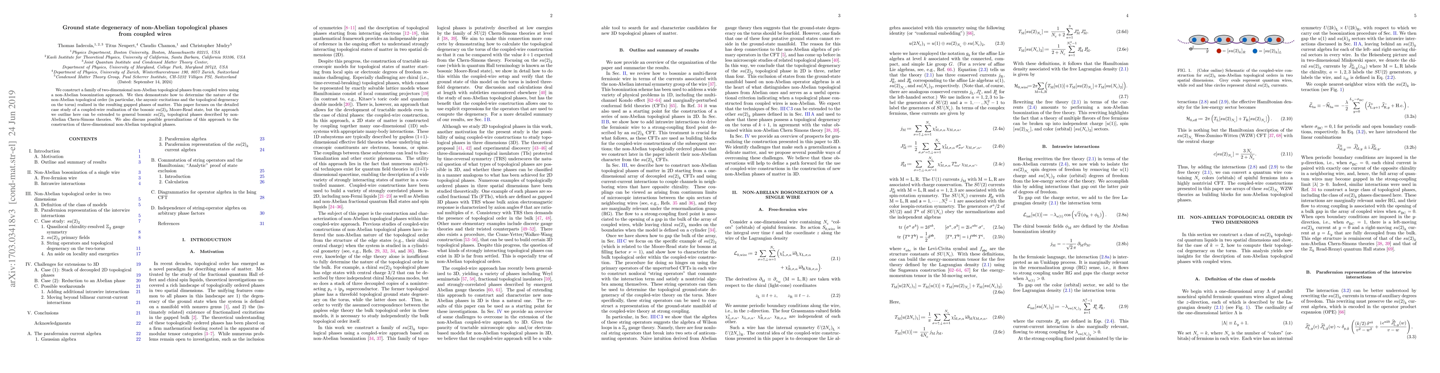 This paper constructs two-dimensional non-Abelian topological phases from coupled wires via a non-Abelian bosonization approach, focusing on the Moore-Read state, and outlines methods to determine the topological order and degeneracy. It extends to general bosonic $su(2)_{k}$ phases and discusses potential applications in three-dimensional constructions.