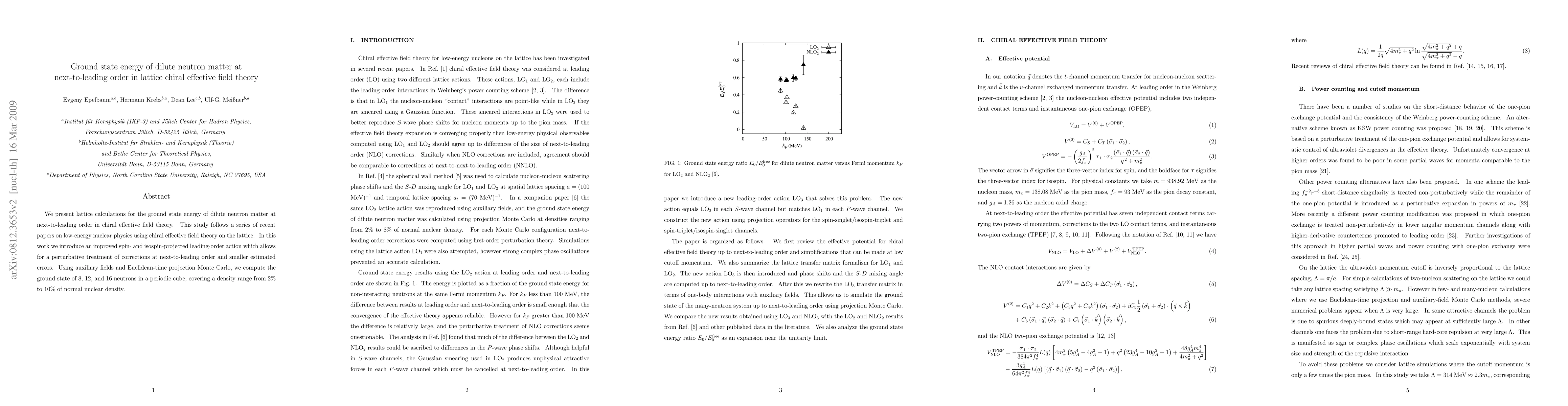 This paper reports lattice calculations for the ground state energy of dilute neutron matter at next-to-leading order using chiral effective field theory, employing an improved leading-order action to achieve smaller errors. The study computes the ground state for neutron numbers 8, 12, and 16 across a density range of 2% to 10% of normal nuclear density.