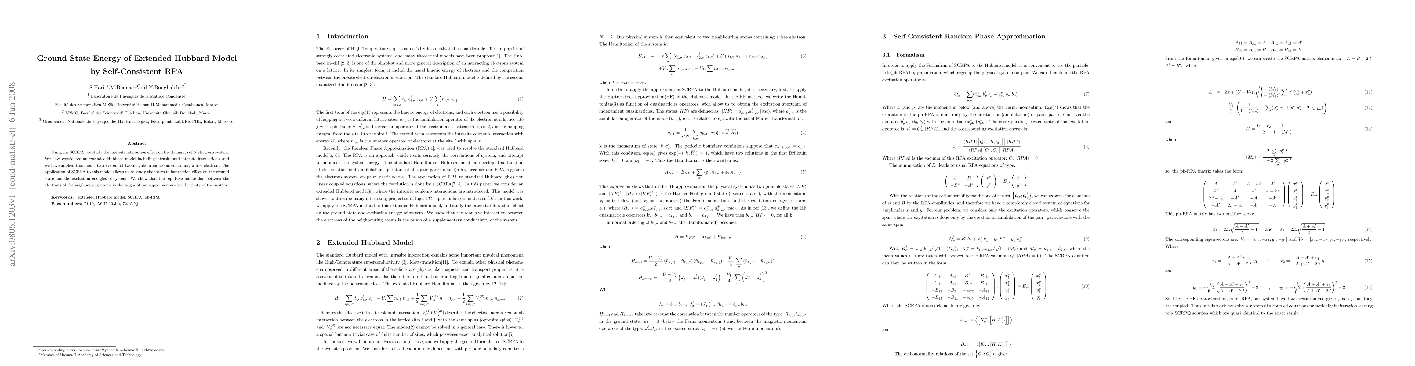 This paper investigates the ground state energy and excitation dynamics of an extended Hubbard model using self-consistent RPA (SCRPA). It finds that the repulsive intersite interaction between electrons on neighboring atoms leads to enhanced conductivity in the system.