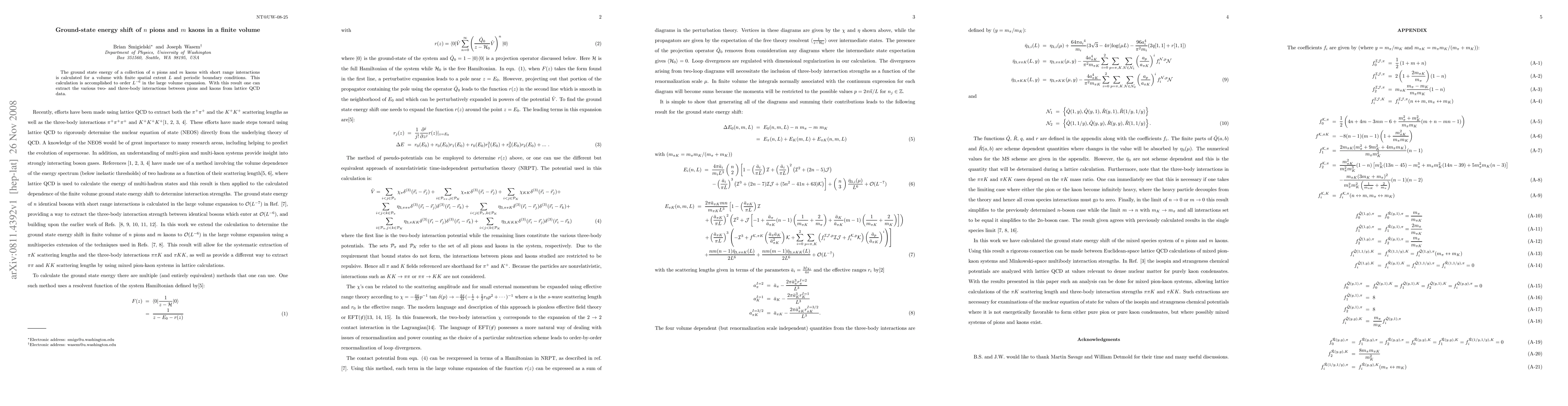 This paper calculates the ground-state energy of a system of n pions and m kaons in a finite volume with periodic boundary conditions, aiming to extract two- and three-body interactions from lattice QCD data.