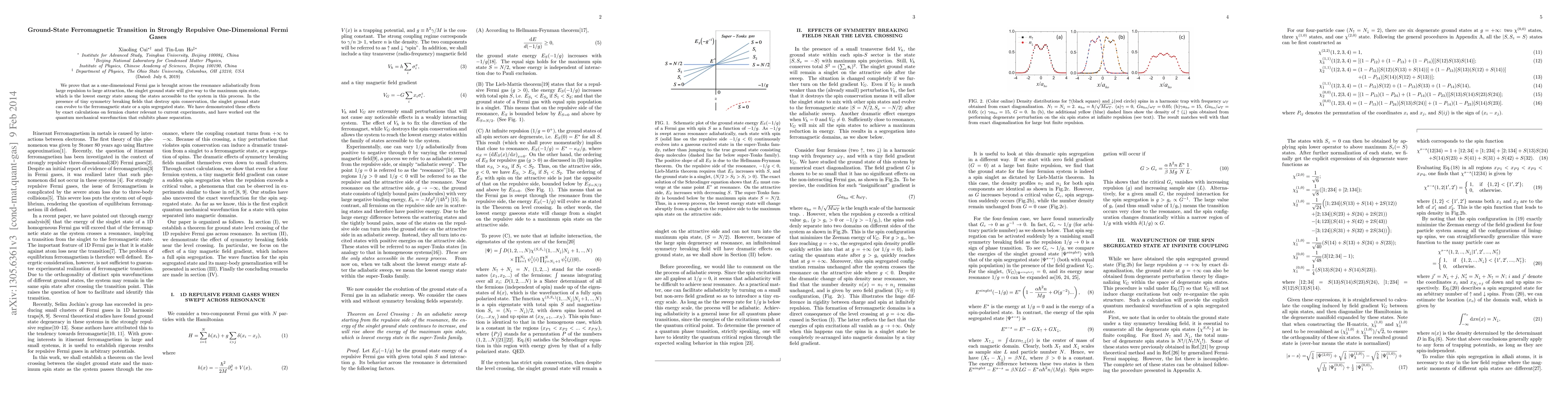 We prove that as a one-dimensional Fermi gas is brought across the resonance adiabatically from large repulsion to large attraction, the singlet ground state will give way to the maximum spin state, which is the lowest energy state among the states accessible to the system in this process. In the presence of tiny symmetry breaking fields that destroy spin conservation, the singlet ground state can evolve to the ferromagnetic state or a spin segregated state. We have demonstrated these effects by exact calculations on fermion cluster relevant to current experiments, and have worked out the quantum mechanical wavefunction that exhibits phase separation.