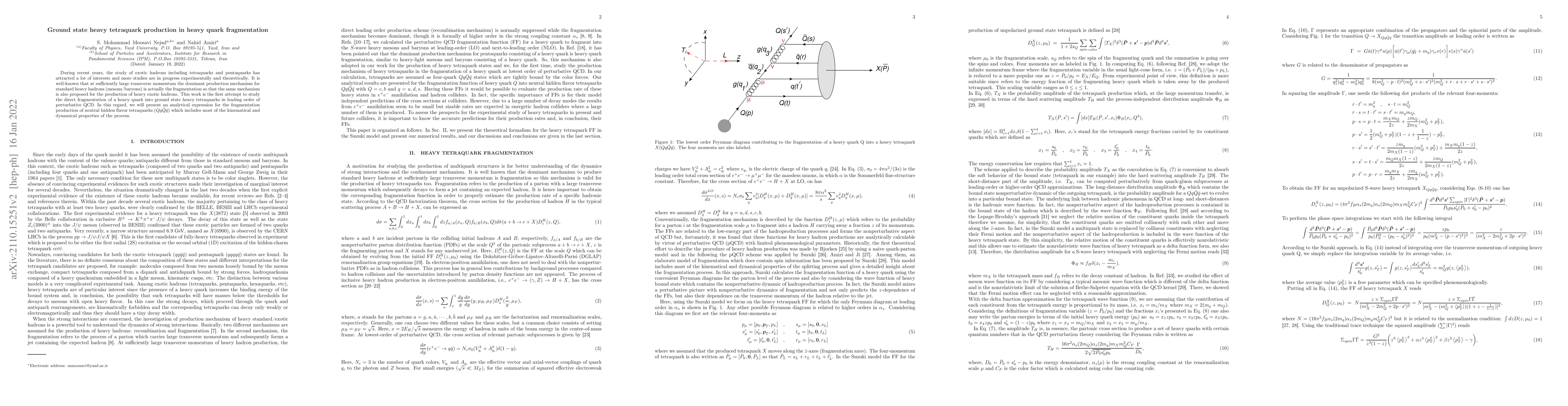 During recent years, the study of exotic hadrons including tetraquarks and pentaquarks has attracted a lot of interests and more studies are in progress experimentally and theoretically. It is well-known that at sufficiently large transverse momentum the dominant production mechanism for standard heavy hadrons (mesons/baryons) is actually the fragmentation so that the same mechanism is also proposed for the production of heavy exotic hadrons. This work is the first attempt to study the direct fragmentation of a heavy quark into ground state heavy tetraquarks in leading order of perturbative QCD. In this regard, we will present an exact analytical expression for the fragmentation production of neutral hidden flavor tetraquarks $(Qq\bar{Q}\bar{q})$ which includes most of the kinematical and dynamical properties of the process.