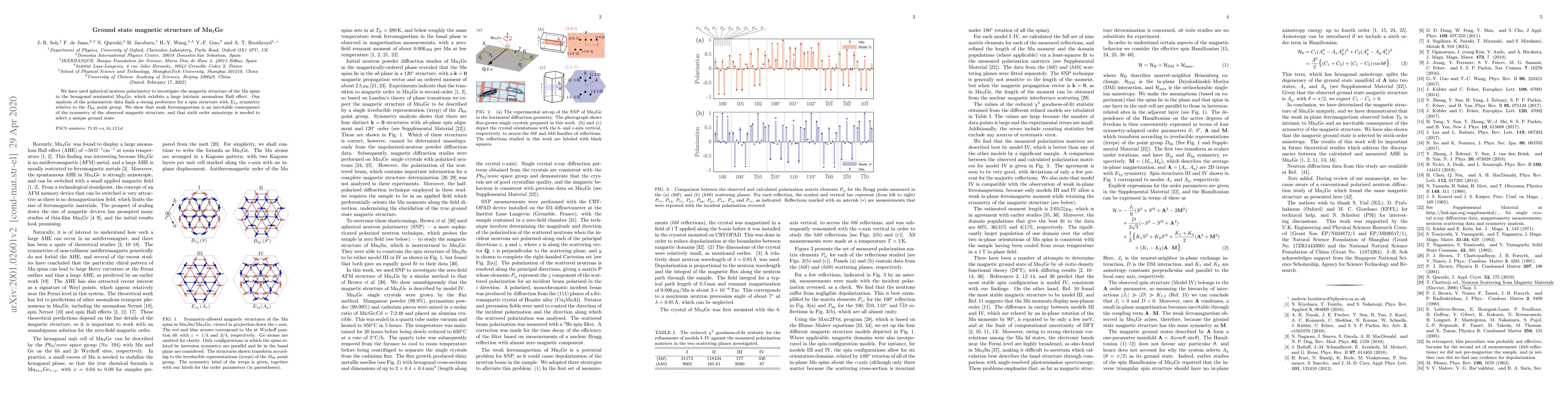 This study uses spherical neutron polarimetry to determine the magnetic structure of Mn$_3$Ge, revealing a strong preference for an $E_{1g}$ spin structure over $D_{6h}$. The analysis indicates weak ferromagnetism and necessitates sixth-order anisotropy to establish a unique ground state.