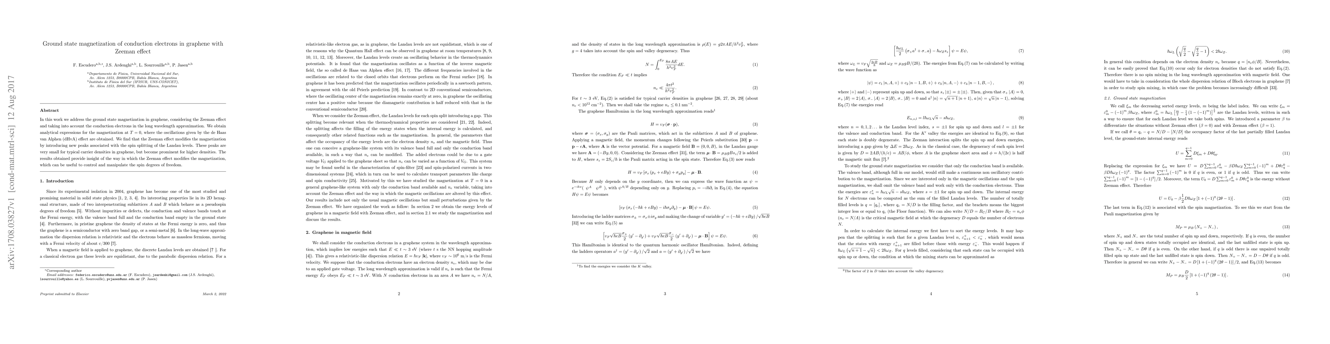 Researchers studied how the Zeeman effect affects magnetization in graphene at 0 K, finding new peaks due to spin splitting of Landau levels that become more significant at higher carrier densities.