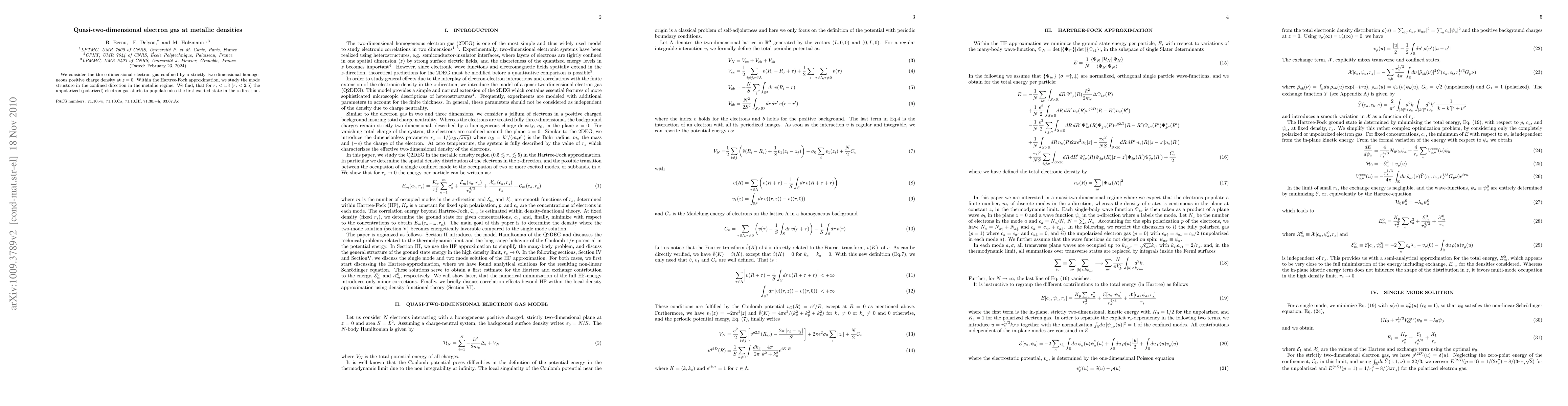 Summary: This study investigates the ground state of a quasi-two-dimensional electron gas confined by a two-dimensional positive charge density using the Hartree-Fock approximation. It reveals that for a reduced electron density below 1.3 (2.5), the unpolarized (polarized) electron gas begins to occupy the first excited state in the confinement direction.