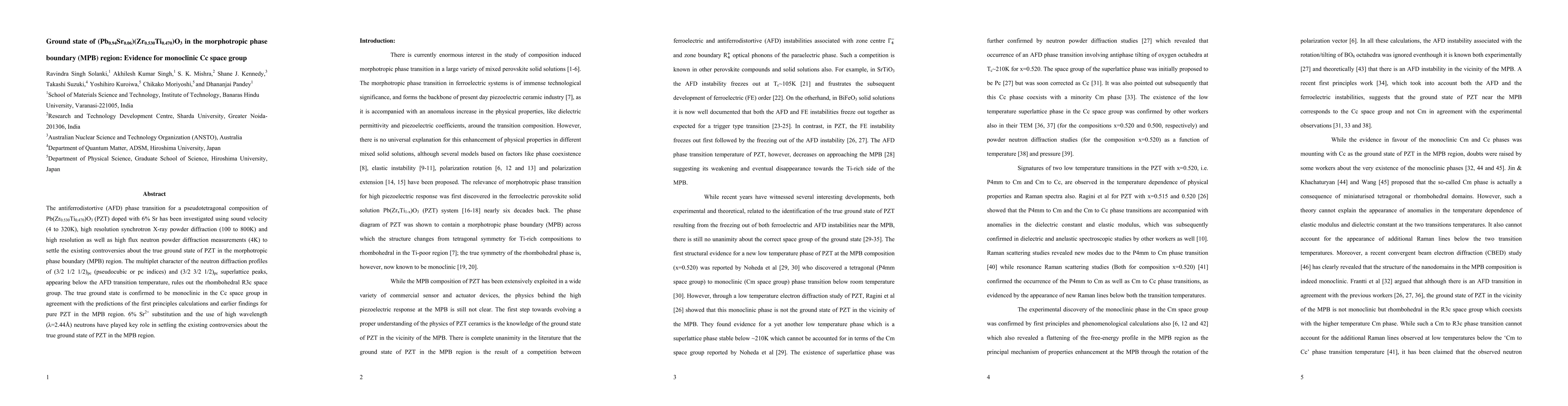 Researchers investigated the ground state of a lead zirconate titanate (PZT) compound in the morphotropic phase boundary region using X-ray and neutron diffraction. They found evidence for a monoclinic Cc space group structure, confirming earlier predictions and resolving controversies about its true ground state.
