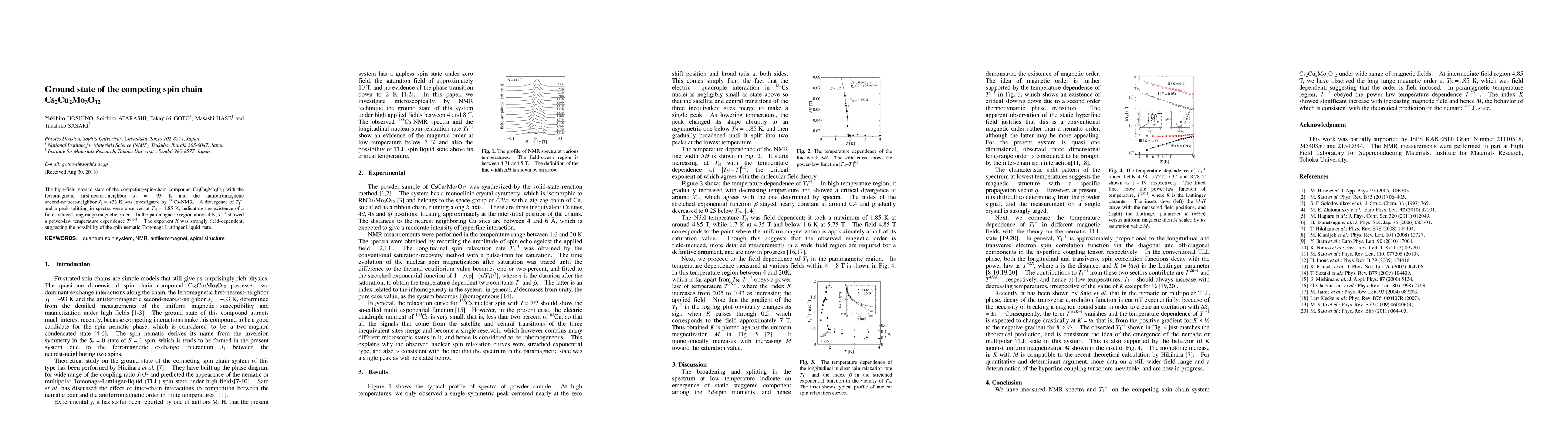 The study investigates the ground state of Cs2Cu2Mo3O12 using 133Cs-NMR, revealing a field-induced long-range magnetic order at TN = 1.85 K. In the paramagnetic region, T1-1 displays a power-law temperature dependence, suggesting a possible spin-nematic Tomonaga Luttinger Liquid state.