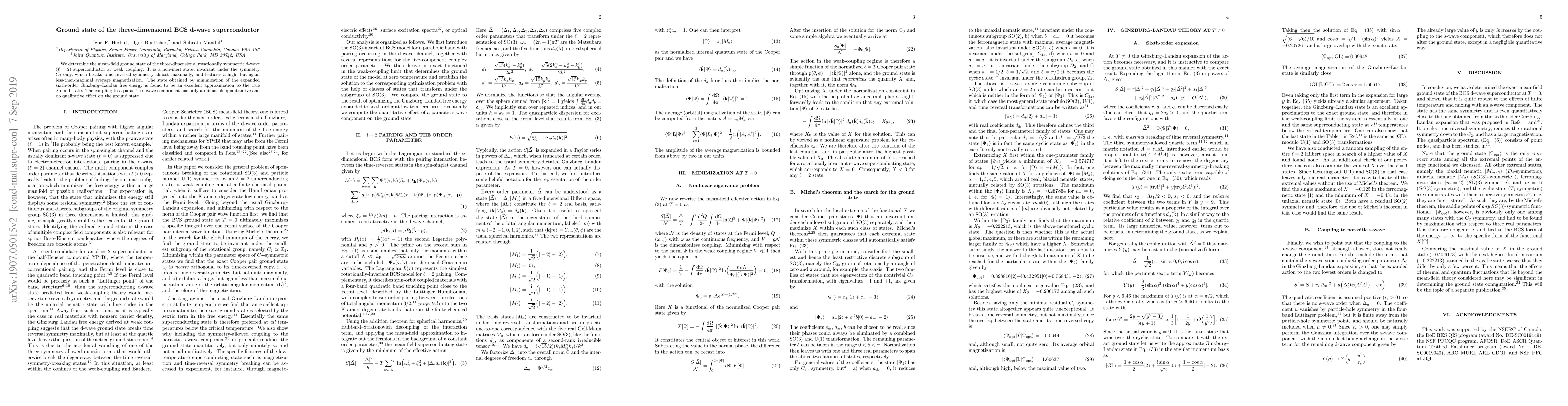 We determine the mean-field ground state of the three-dimensional rotationally symmetric d-wave ($\ell=2$) superconductor at weak coupling. It is a non-inert state, invariant under the symmetry $C_{2}$ only, which breaks time reversal symmetry almost maximally, and features a high, but again less than maximal average magnetization. The state obtained by minimization of the expanded sixth-order Ginzburg--Landau free energy is found to be an excellent approximation to the true ground state. The coupling to a parasitic s-wave component has only a minuscule quantitative and no qualitative effect on the ground state.