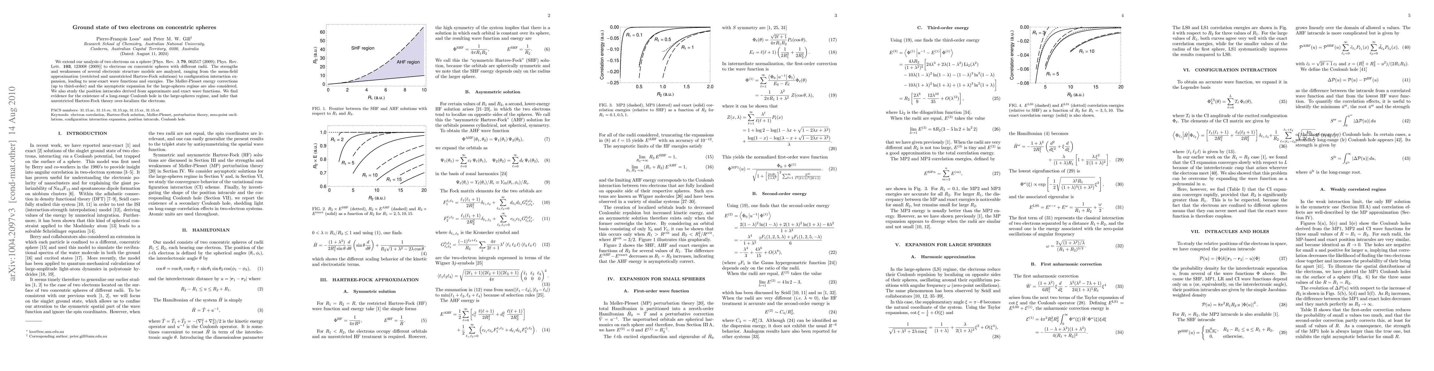 Researchers studied two electrons on concentric spheres using various electronic structure models to find a long-range Coulomb hole in the large-spheres regime, and found that unrestricted Hartree-Fock theory over-localizes the electrons.