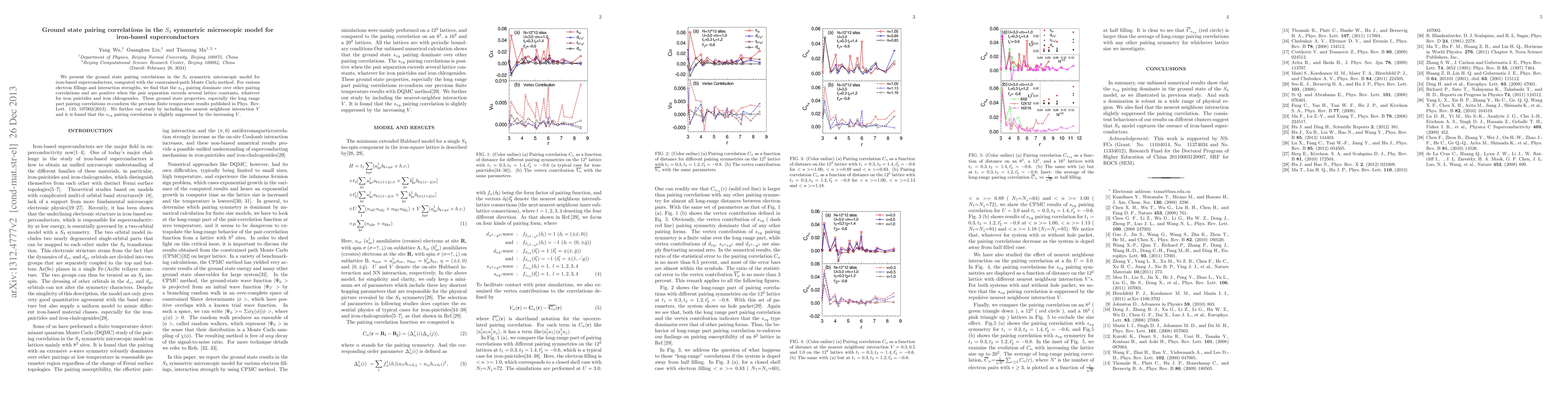 This research examines ground state pairing correlations in the $S_4$ symmetric microscopic model for iron-based superconductors, revealing that $s_{xy}$ pairing dominates and persists over long distances, confirming earlier findings at finite temperatures. Inclusion of nearest neighbour interactions slightly suppresses this $s_{xy}$ pairing.