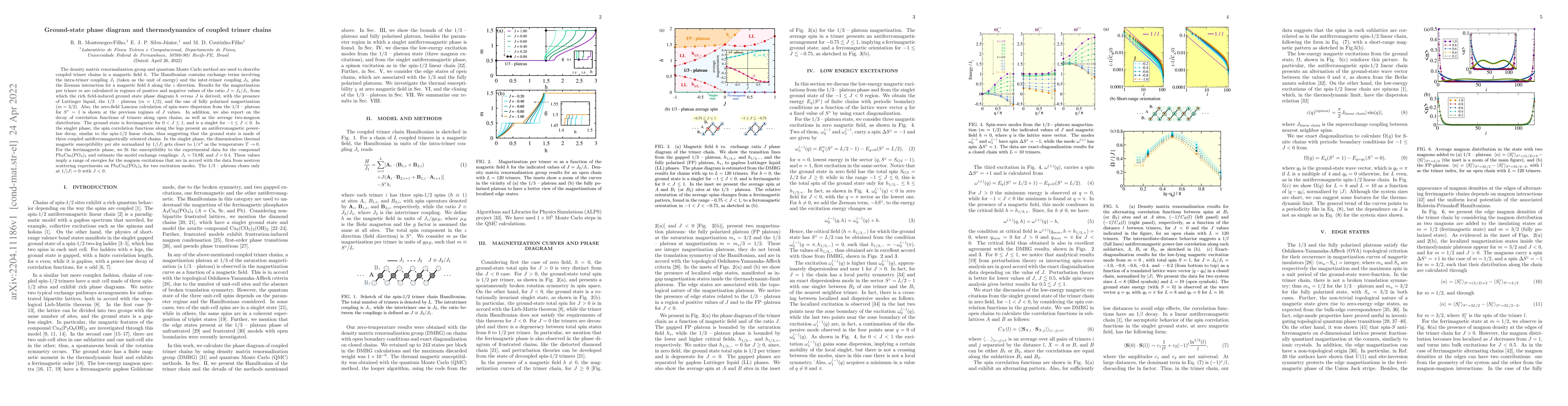 used to describe coupled trimer chains in a magnetic field h. The Hamiltonian