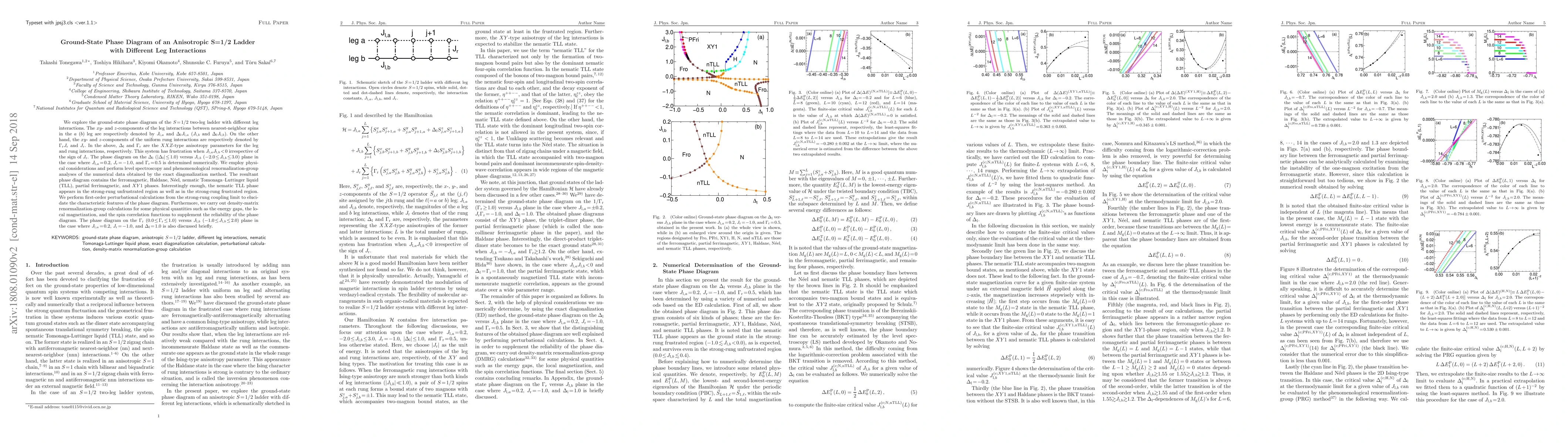 This research investigates the ground-state phase diagram of an anisotropic $S=1/2$ two-leg ladder system with varying leg and rung interactions. The study reveals multiple phases including ferromagnetic, Haldane, Néel, nematic Tomonaga-Luttinger liquid, partial ferrimagnetic, and $XY1$ phases, with the nematic TLL phase appearing in both frustrated and unfrustrated regions.