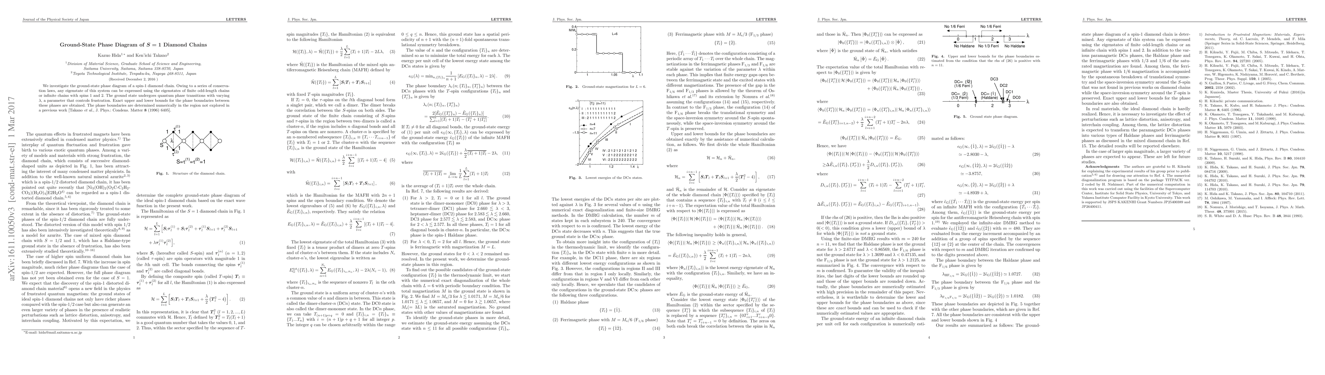 This paper examines the ground-state phase diagram of a spin-1 diamond chain, identifying quantum phase transitions driven by a frustration parameter $\lambda$. Numerical methods refine phase boundary determinations beyond previous studies.