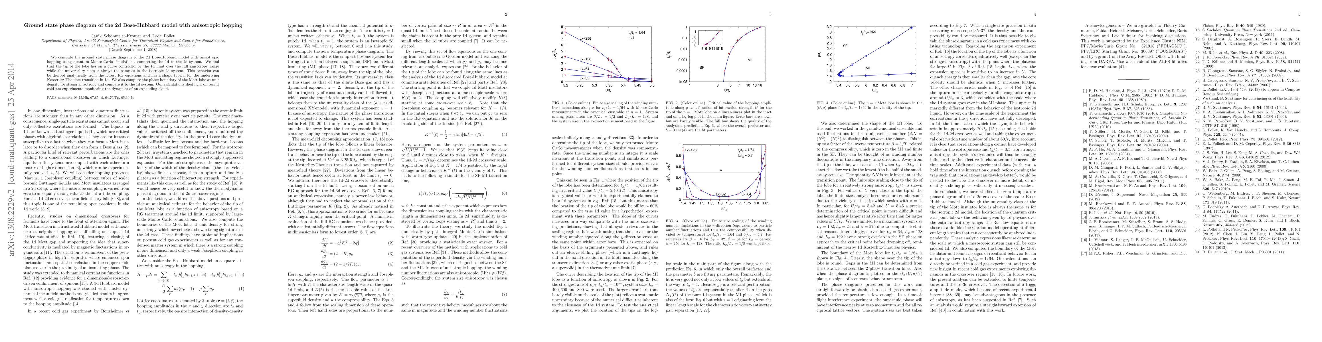 We compute the ground state phase diagram of the 2d Bose-Hubbard model with anisotropic hopping using quantum Monte Carlo simulations, connecting the 1d to the 2d system. We find that the tip of the lobe lies on a curve controlled by the 1d limit over the full anisotropy range while the universality class is always the same as in the isotropic 2d system. This behavior can be derived analytically from the lowest RG equations and has a form typical for the underlying Kosterlitz-Thouless transition in 1d. We also compute the phase boundary of the Mott lobe for strong anisotropy and compare it to the 1d system. Our calculations shed light on recent cold gas experiments monitoring the dynamics of an expanding cloud.
