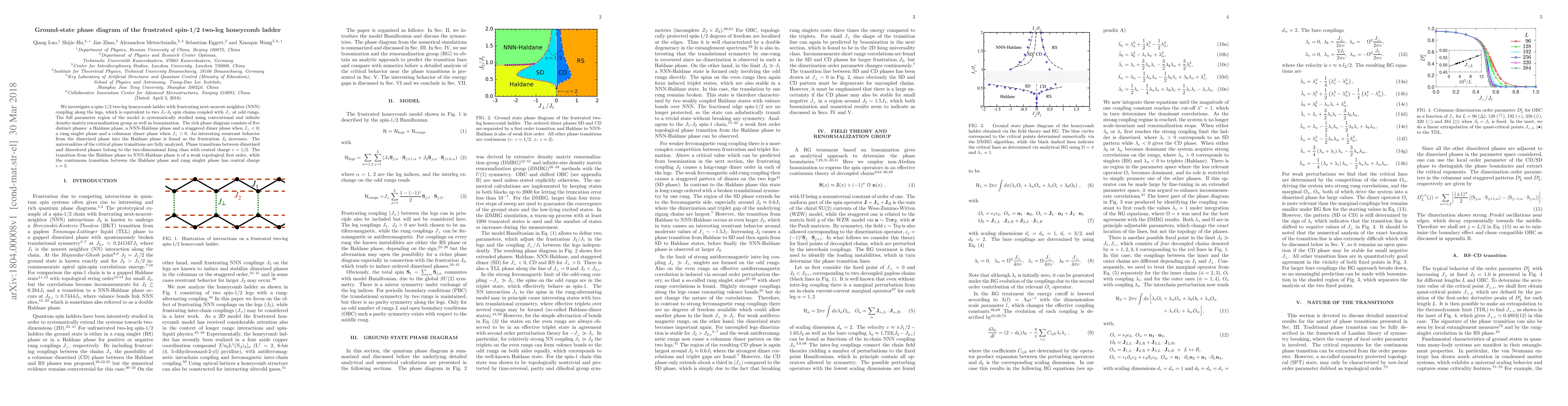 This paper explores the ground-state phase diagram of a spin-1/2 two-leg honeycomb ladder with next-nearest-neighbor coupling, identifying five distinct phases including Haldane, NNN-Haldane, and dimer phases, and analyzing the universalities and critical behaviors of the transitions.
