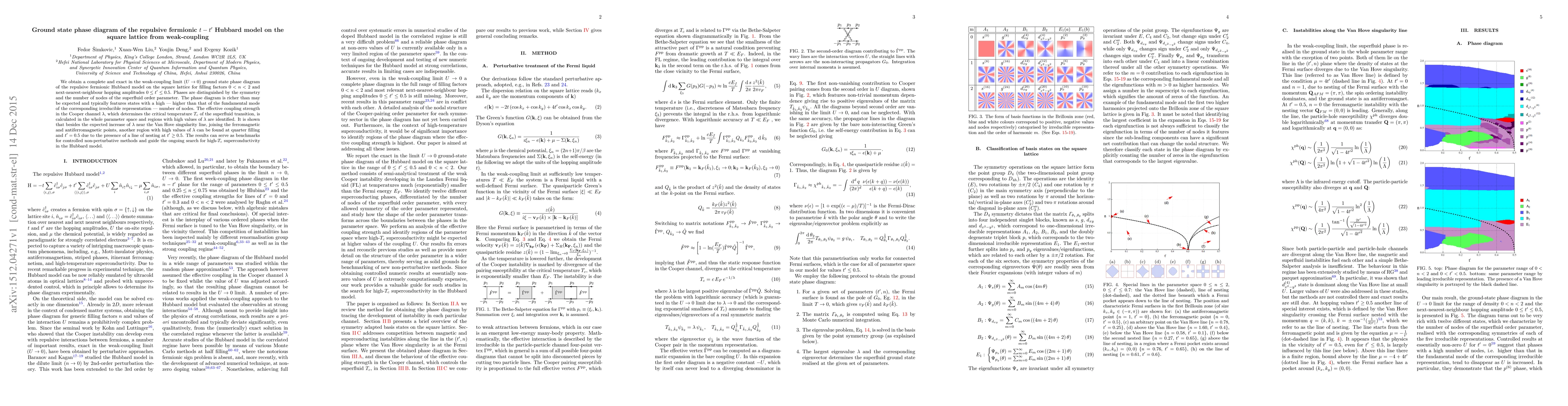 This paper presents an exact weak-coupling ground state phase diagram for the repulsive fermionic Hubbard model on the square lattice, revealing complex superfluid phases with high-node order parameters. It identifies regions with high effective coupling strength $\lambda$, particularly near the Van Hove singularity and at quarter filling with $t^{\prime}=0.5$, which may guide the search for high-$T_c$ superconductivity.
