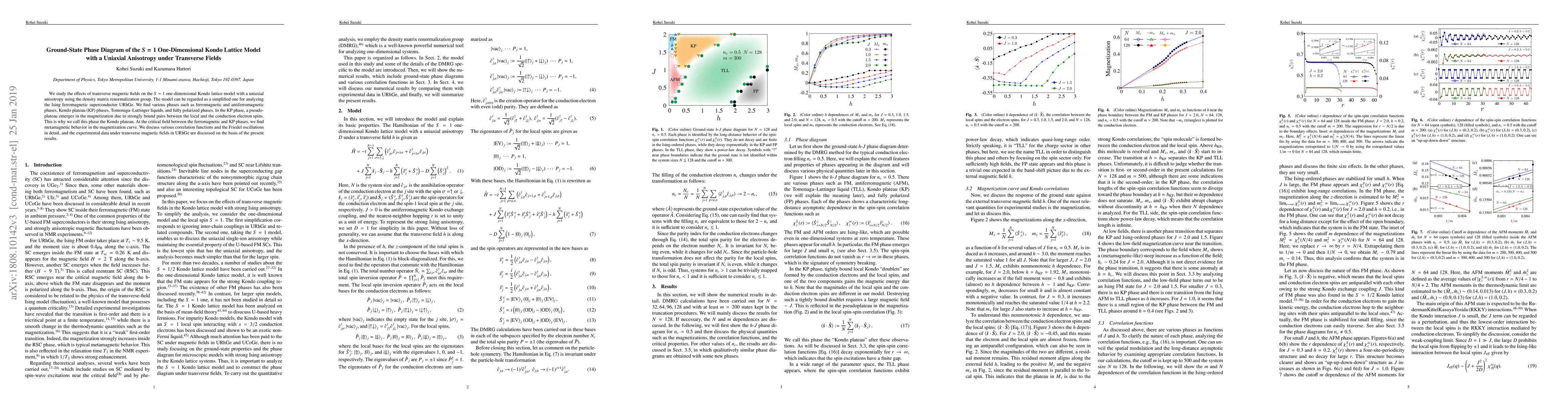 We study the effects of transverse magnetic fields on the $S=1$ one-dimensional Kondo lattice model with a uniaxial anisotropy using the density matrix renormalization group. The model can be regarded as a simplified one for analyzing the Ising ferromagnetic superconductor URhGe. We find various phases such as ferromagnetic and antiferromagnetic phases, Kondo plateau (KP) phases, Tomonaga-Luttinger liquids, and fully polarized phases. In the KP phase, a pseudoplateau emerges in the magnetization due to strongly bound pairs between the local and the conduction electron spins. This is why we call this phase the Kondo plateau. At the critical field between the ferromagnetic and KP phases, we find metamagnetic behavior in the magnetization curve. We discuss various correlation functions and the Friedel oscillations in detail, and the experimental data under transverse magnetic fields in URhGe are discussed on the basis of the present results.