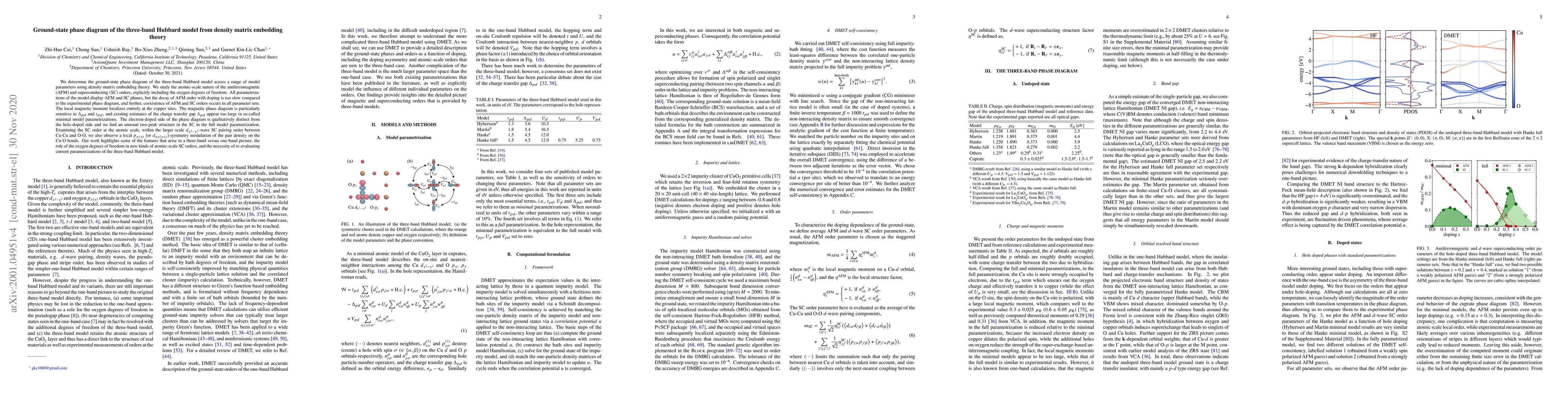 This paper uses density matrix embedding theory to map the ground-state phase diagram of the three-band Hubbard model, revealing AFM and SC phases with localized magnetic moments on copper sites. It finds discrepancies between theoretical and experimental AFM decay rates and highlights the need for re-evaluating current model parametrizations.
