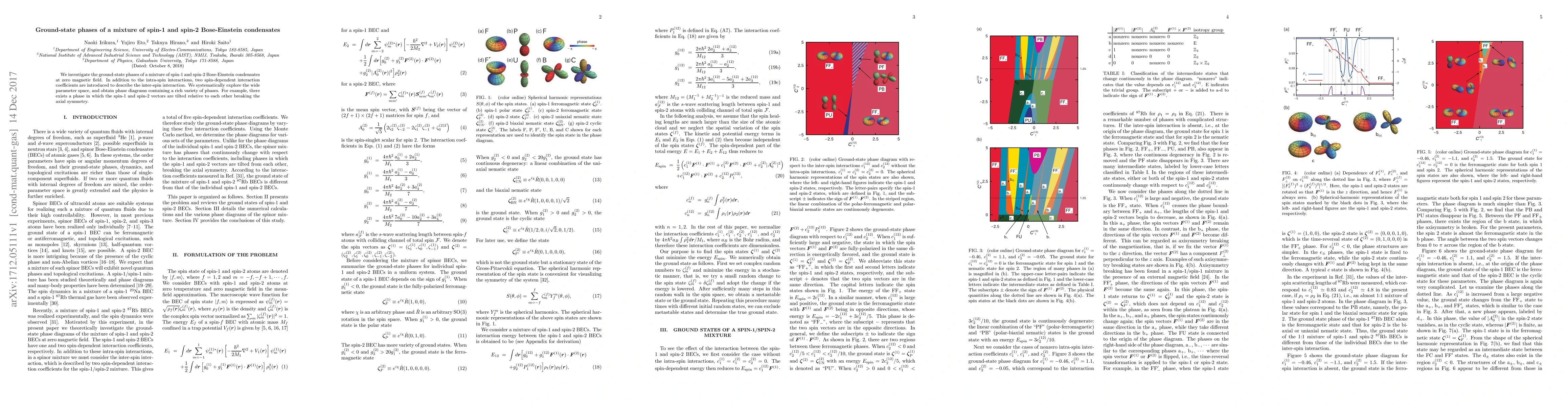 This paper explores the ground-state phases of a mixture of spin-1 and spin-2 Bose-Einstein condensates, revealing a variety of phases including a unique tilted phase where the spin vectors break axial symmetry, through the analysis of inter-spin interactions.